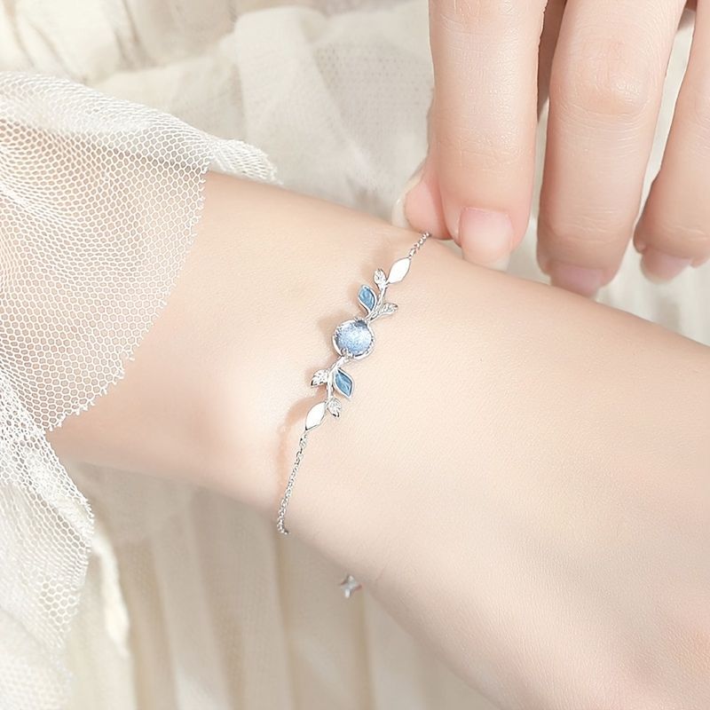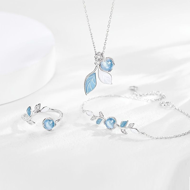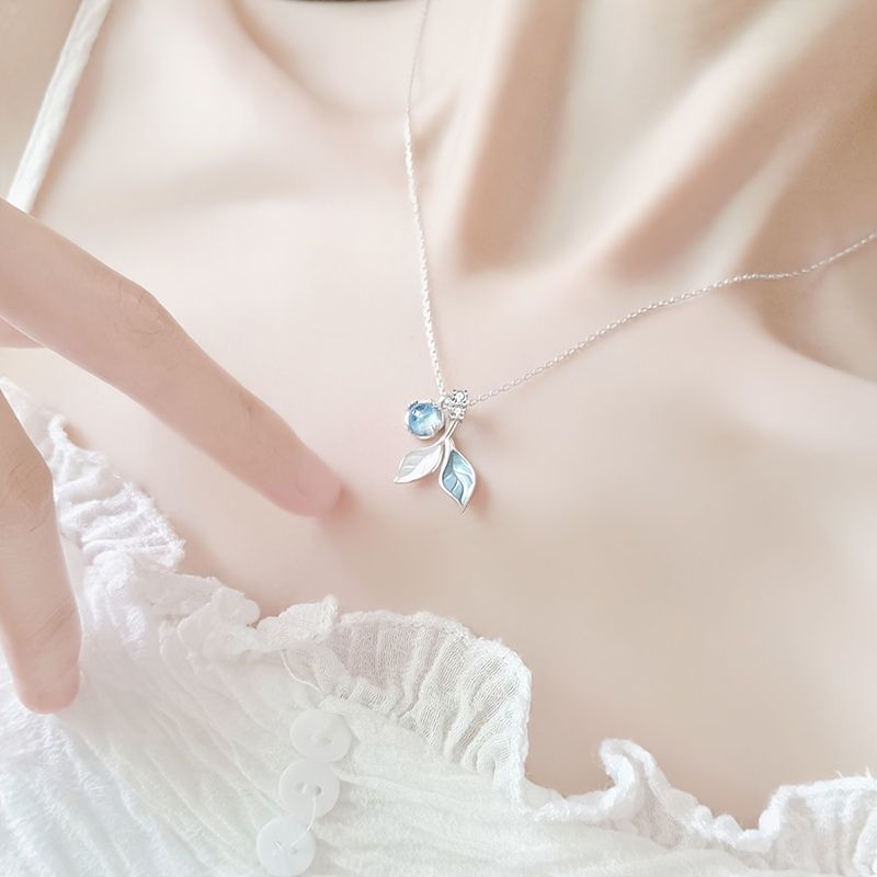 Blue Crystal Leaf Necklace Women's Light Luxury Niche Design Clavicle Chain High-end Sense Delicate And Gentle