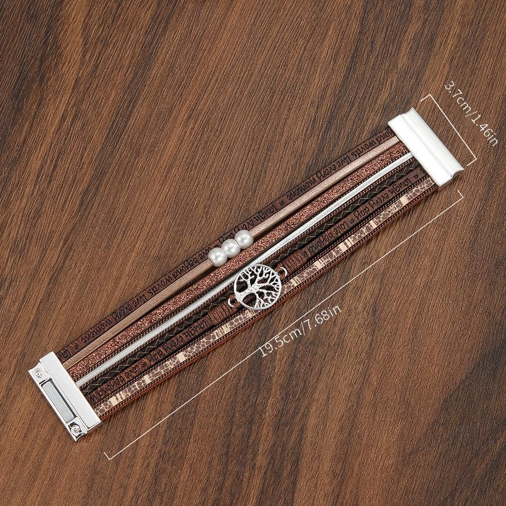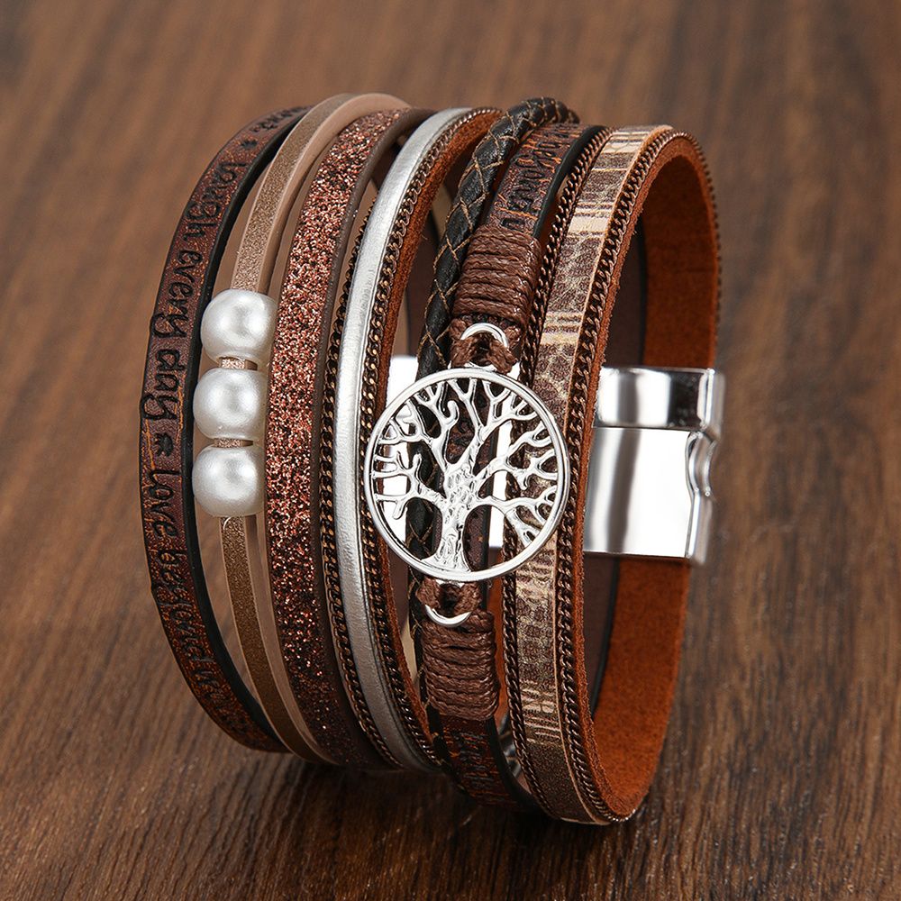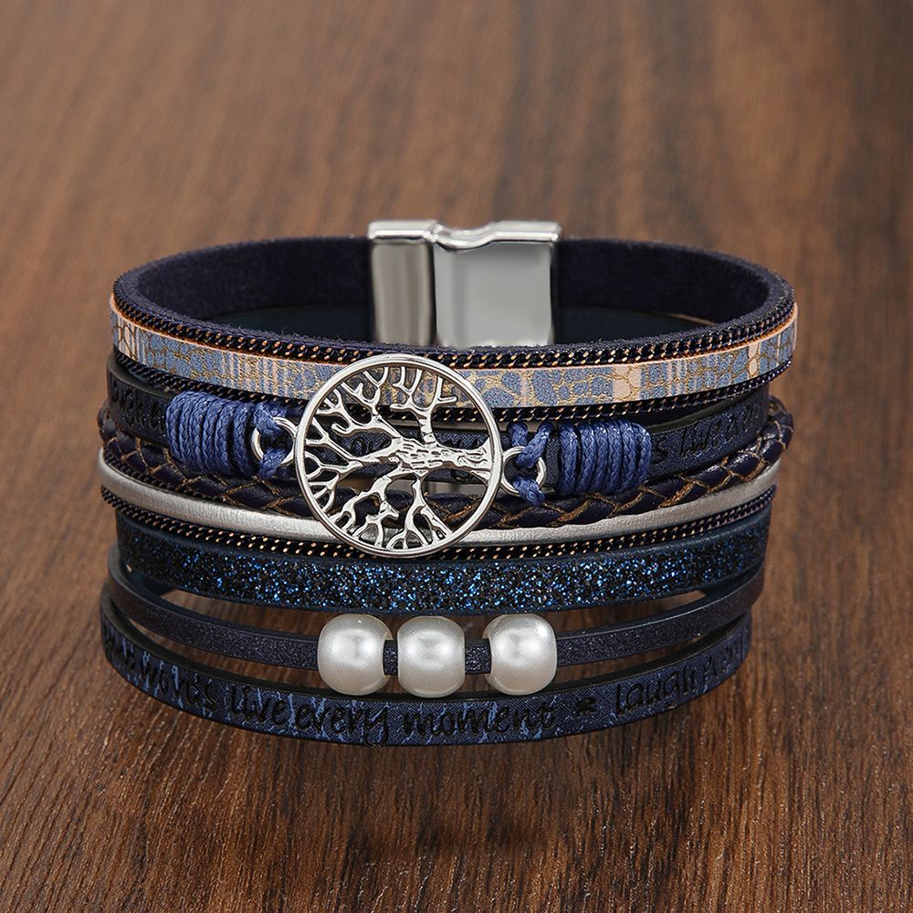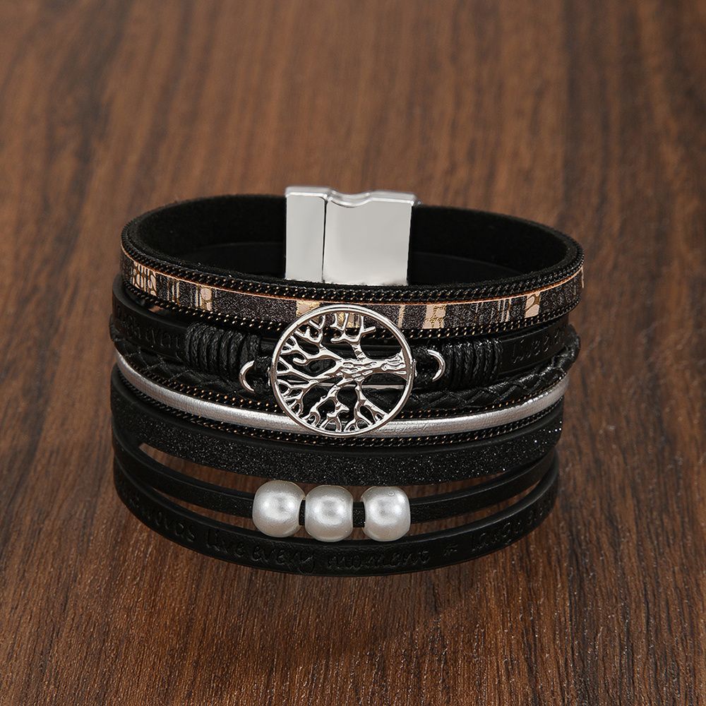 Hollow Tree Of Life Letters Pearl Women's Leather Bracelet