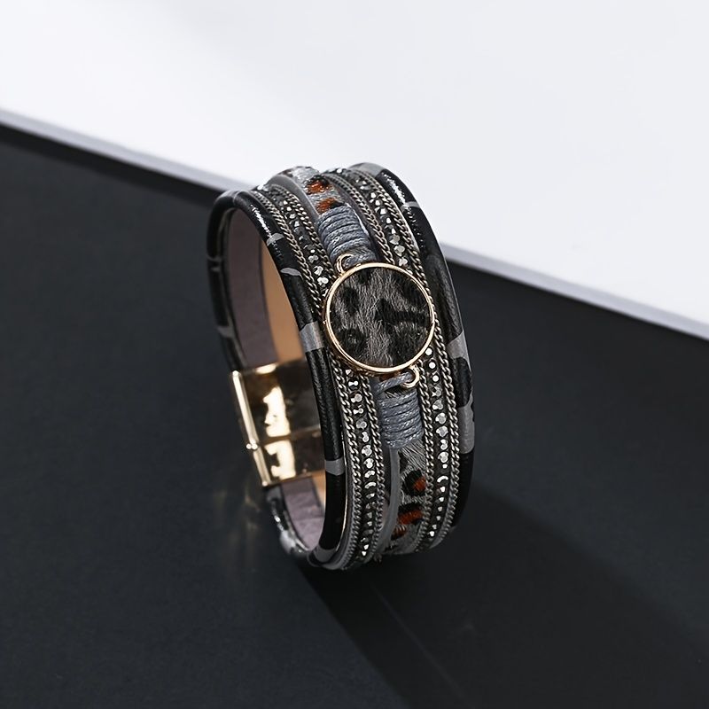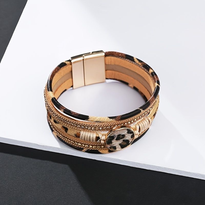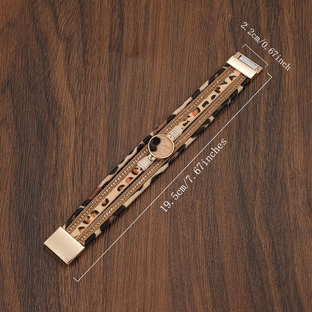 Multilayer Braided Leopard Print Magnetic Button Leather Bracelet For Women Charms Jewelry Gift Birthday Gifts For Women Wife Girls Her