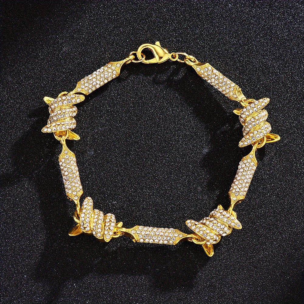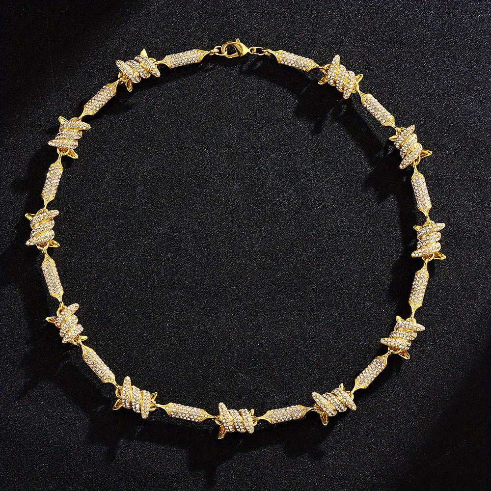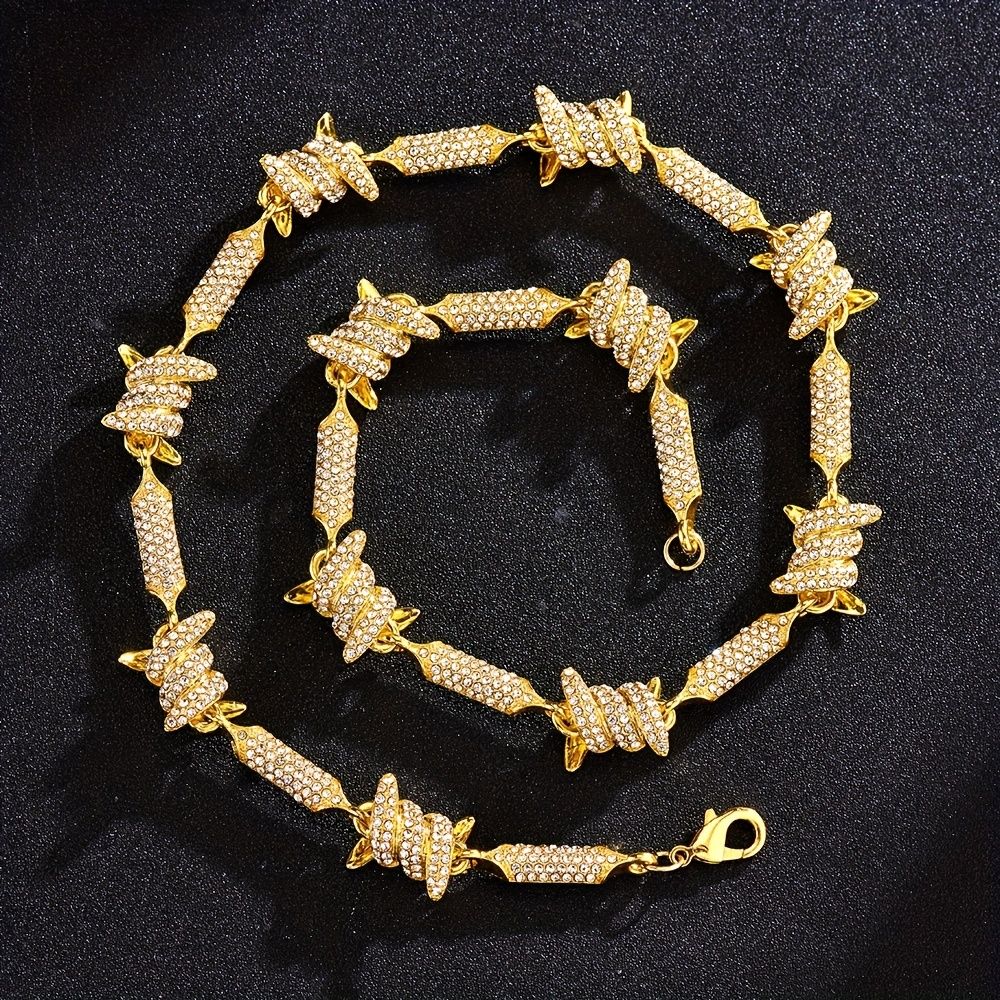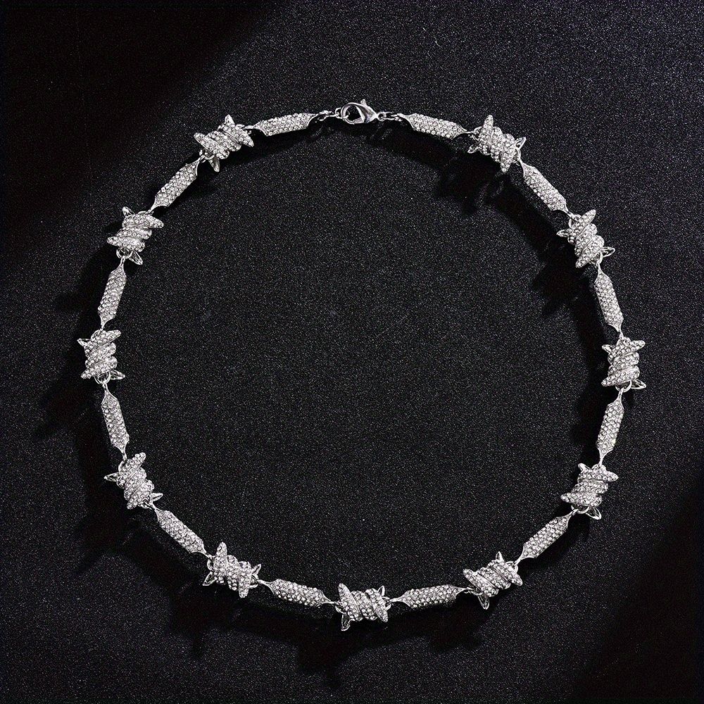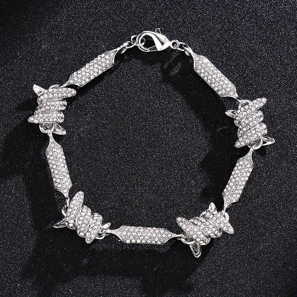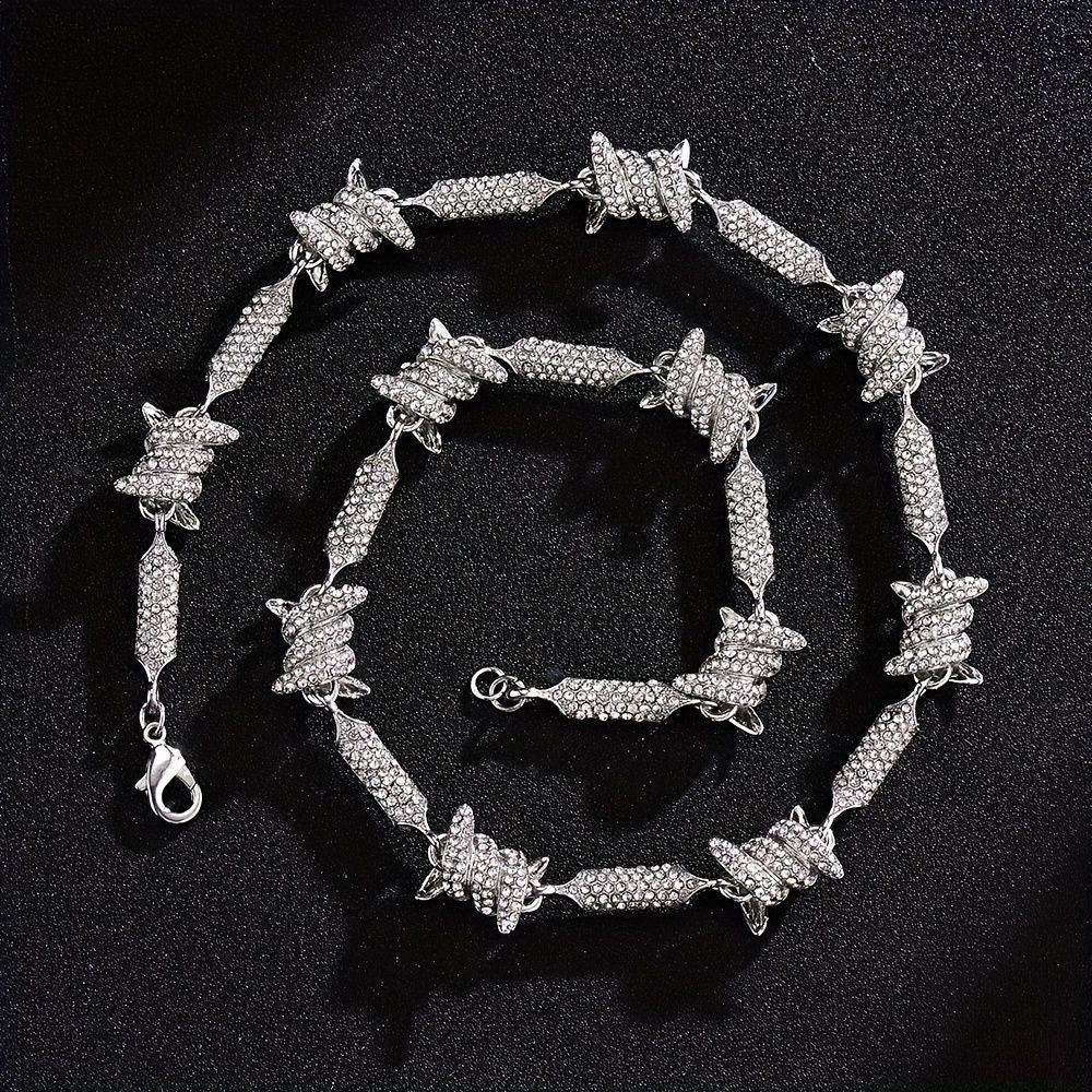Unleash Your Inner Hip Hop Diva with our Barbed Wire Link Chain Rhinestone Iced Out Bling Fashion Bracelet Necklace for Women