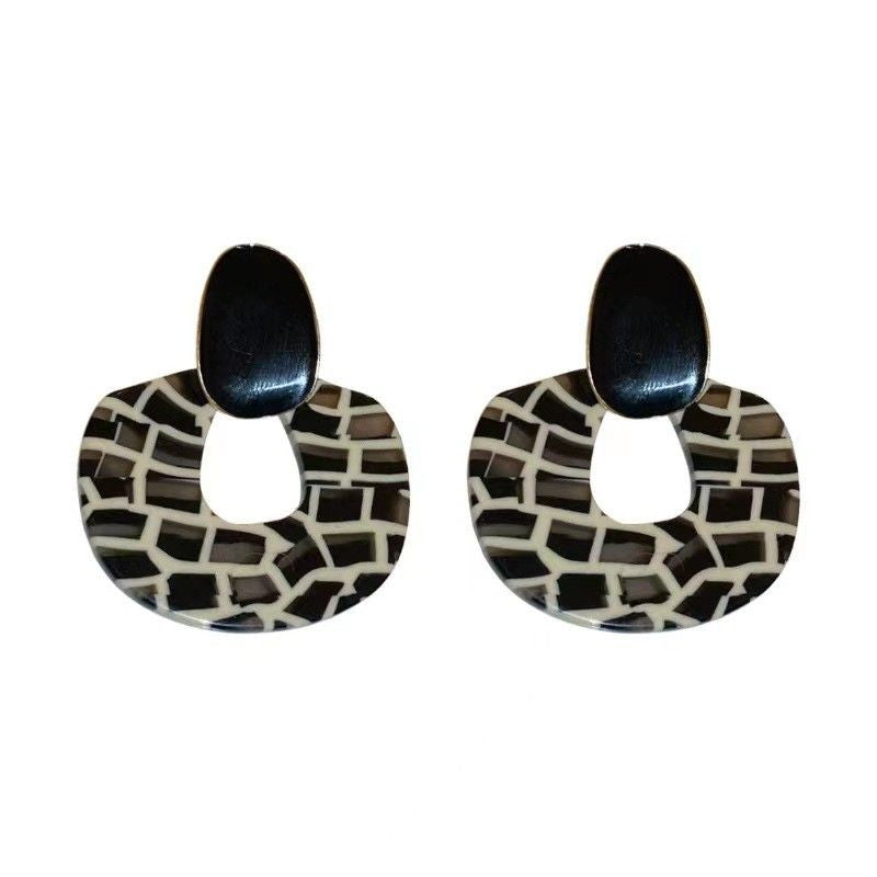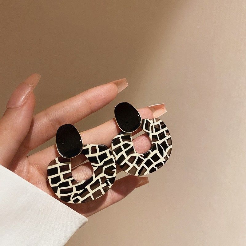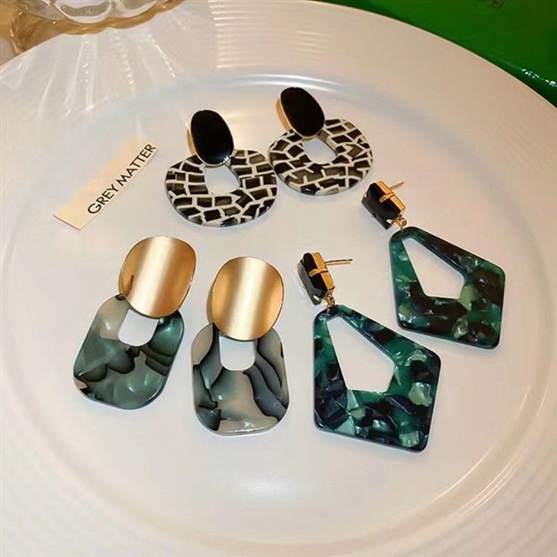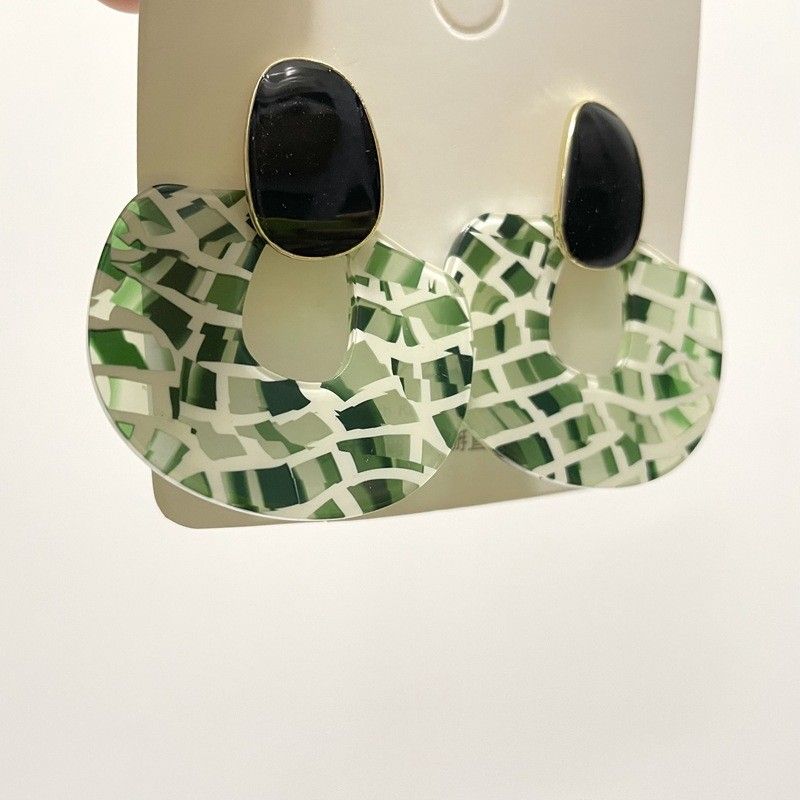 Product information:Treatment Process: ElectroplatingColor: eh11573 Black, eh11573 GreenApplicable people: womenStyle: acrylic earringsMaterial: AlloyShape: GeometricPopular elements: null, PlaidStyle: affordable luxury style