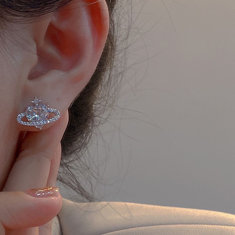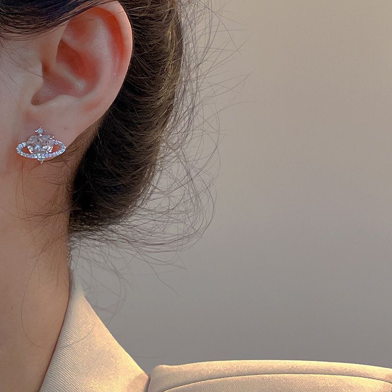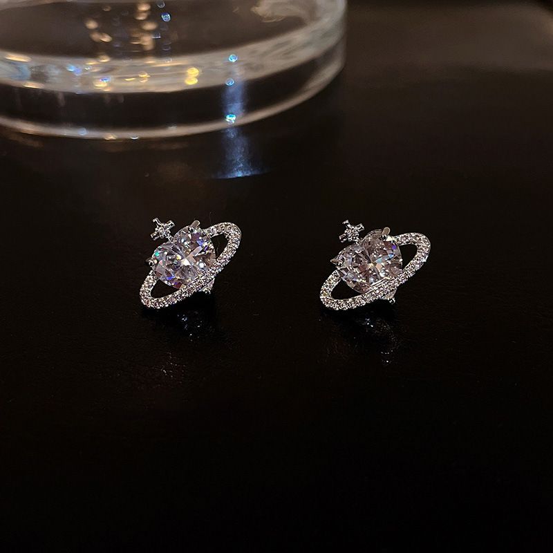 Style: Korean versionMaterial: 925 silverShape: PlanetColor: Love Planet Stud Earrings - White GoldPurity: 925 silverPopular elements: love