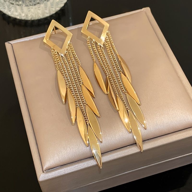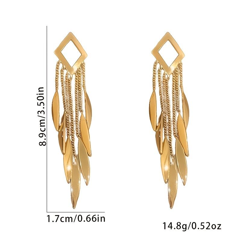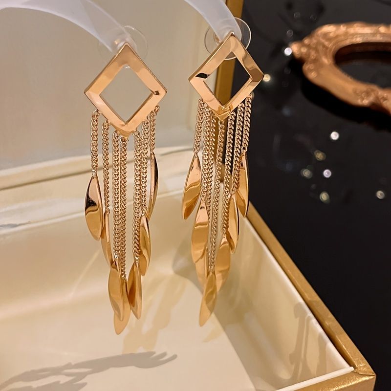 Rhombus Tassel Drop Earrings 18K Gold Plated Ear Jewelry For Women Girls