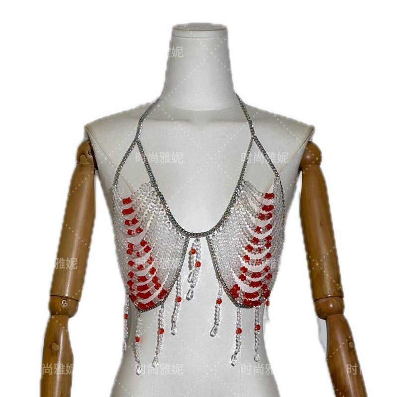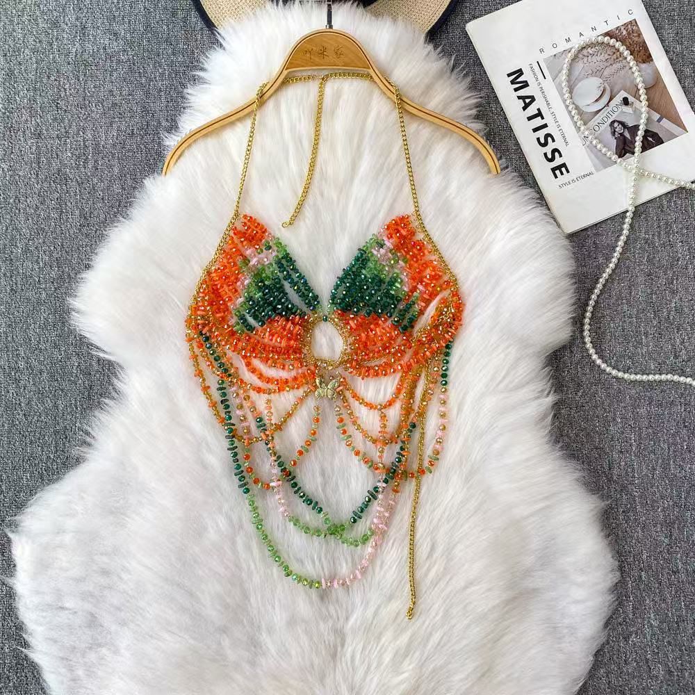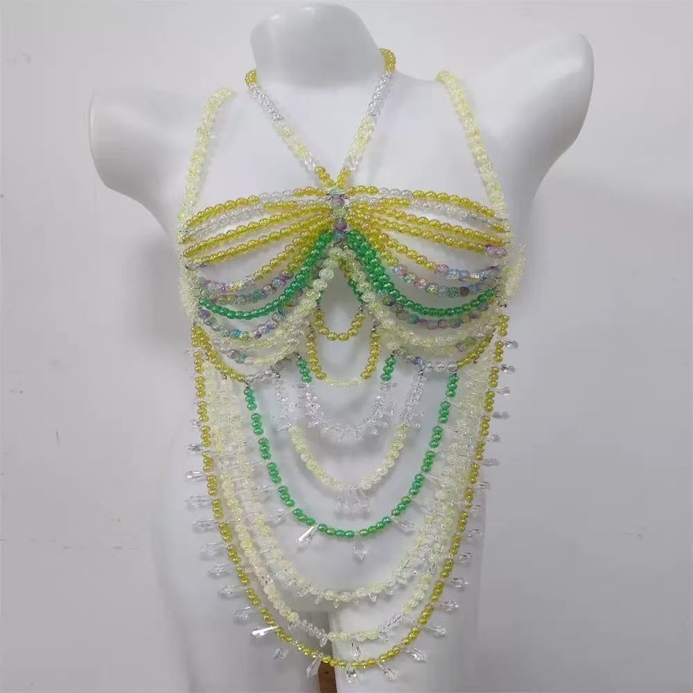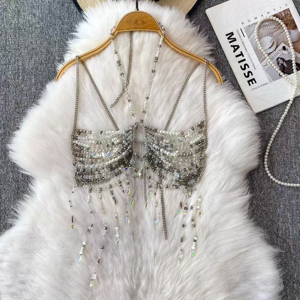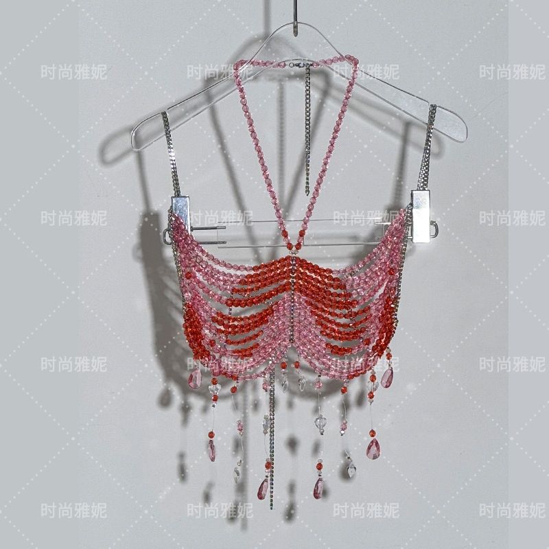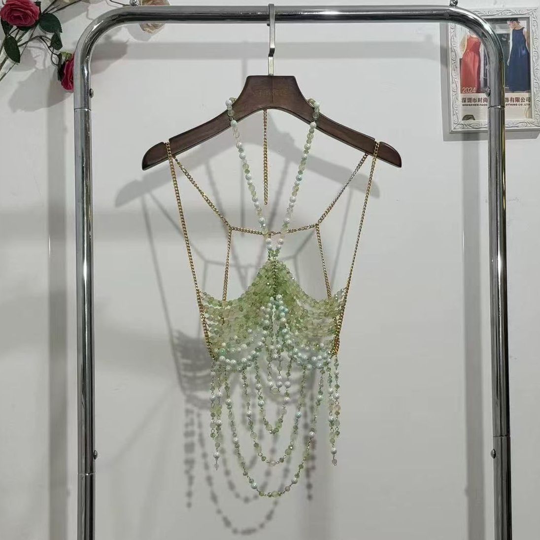 2025 New Women's Necklace Beaded Vest Hollow Out Top Jewelry Exaggerated Pearls Neck Bra Fashion Bra Women's Club Carnival