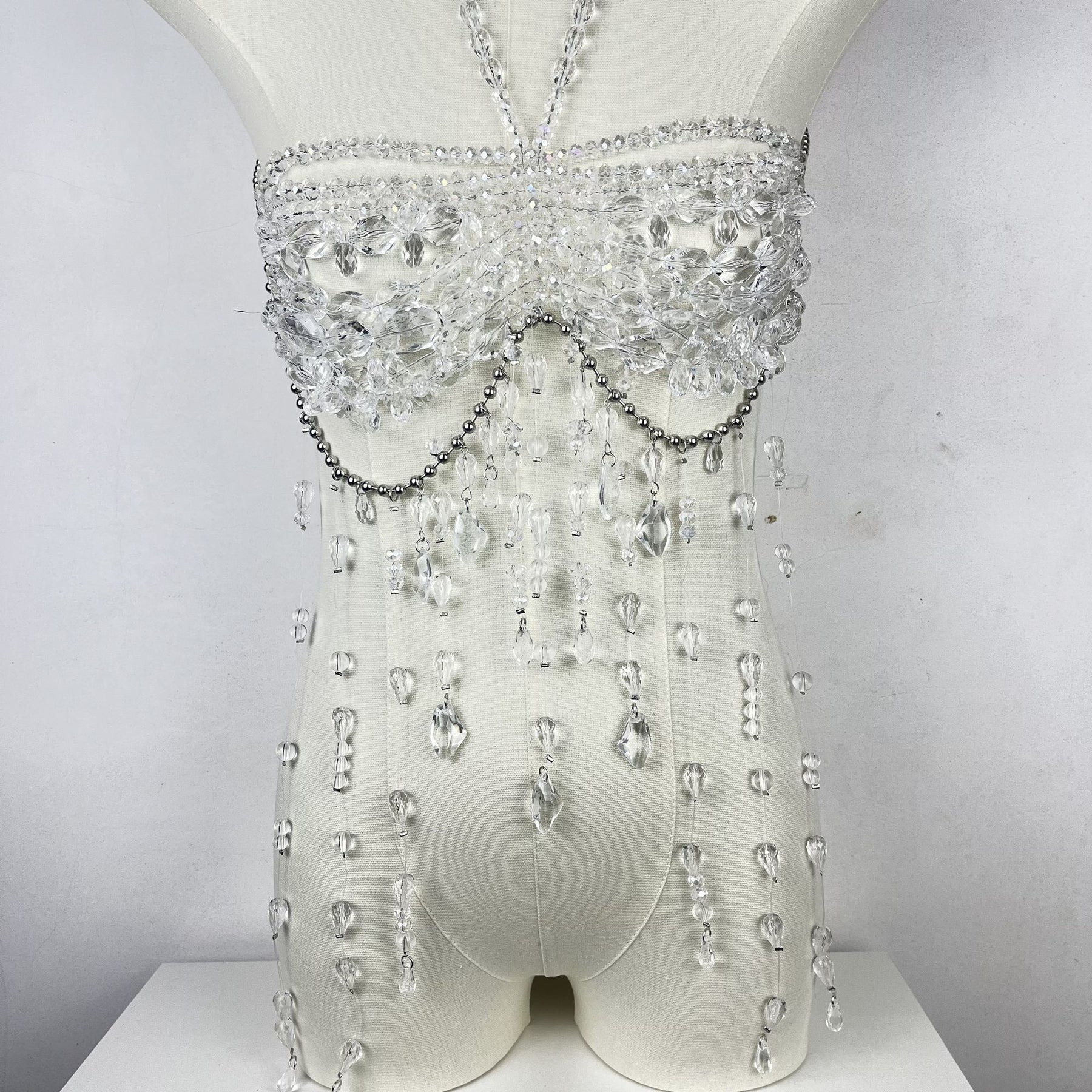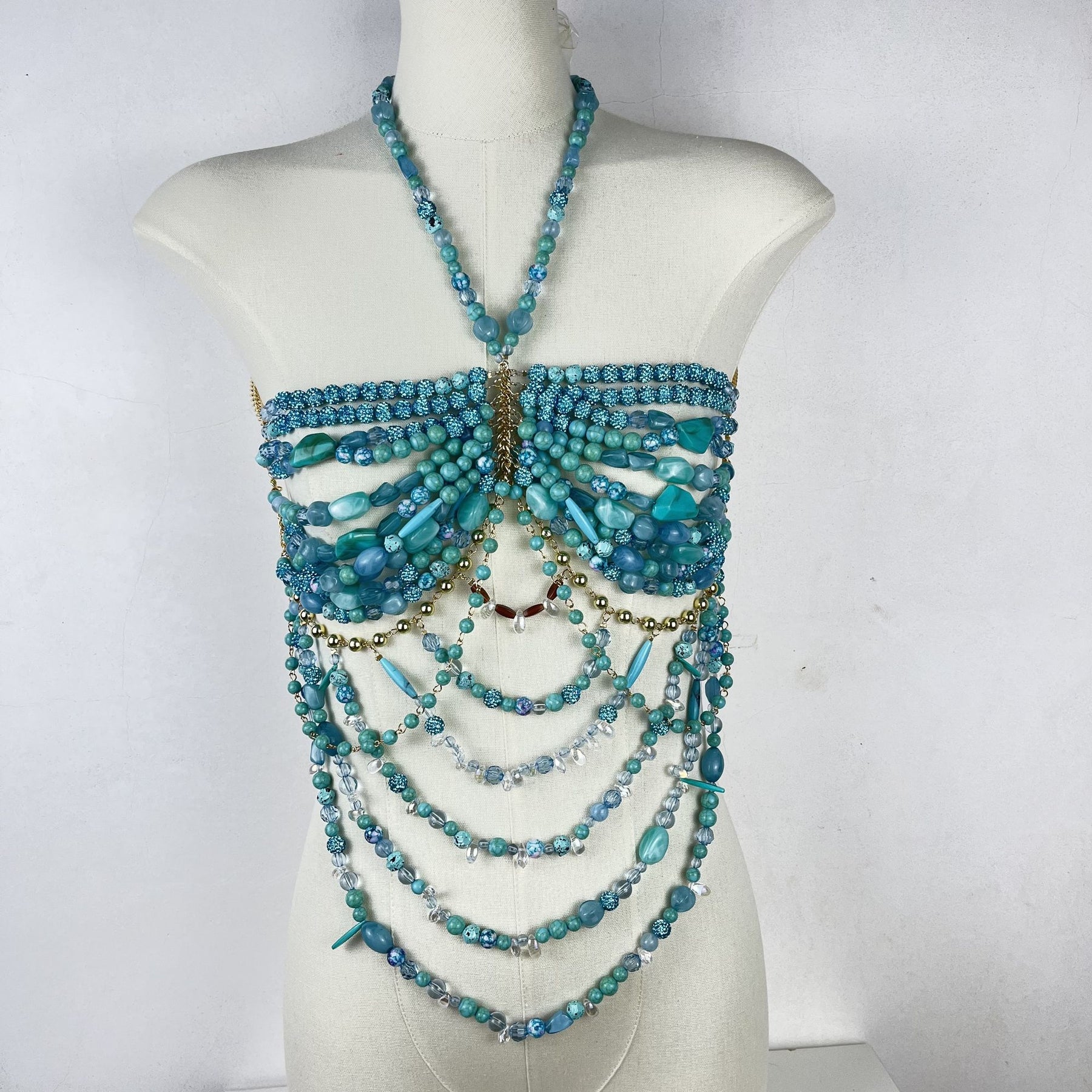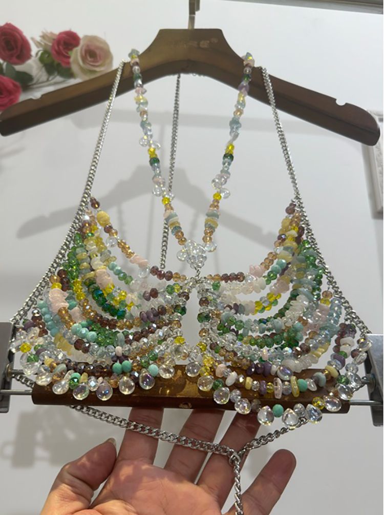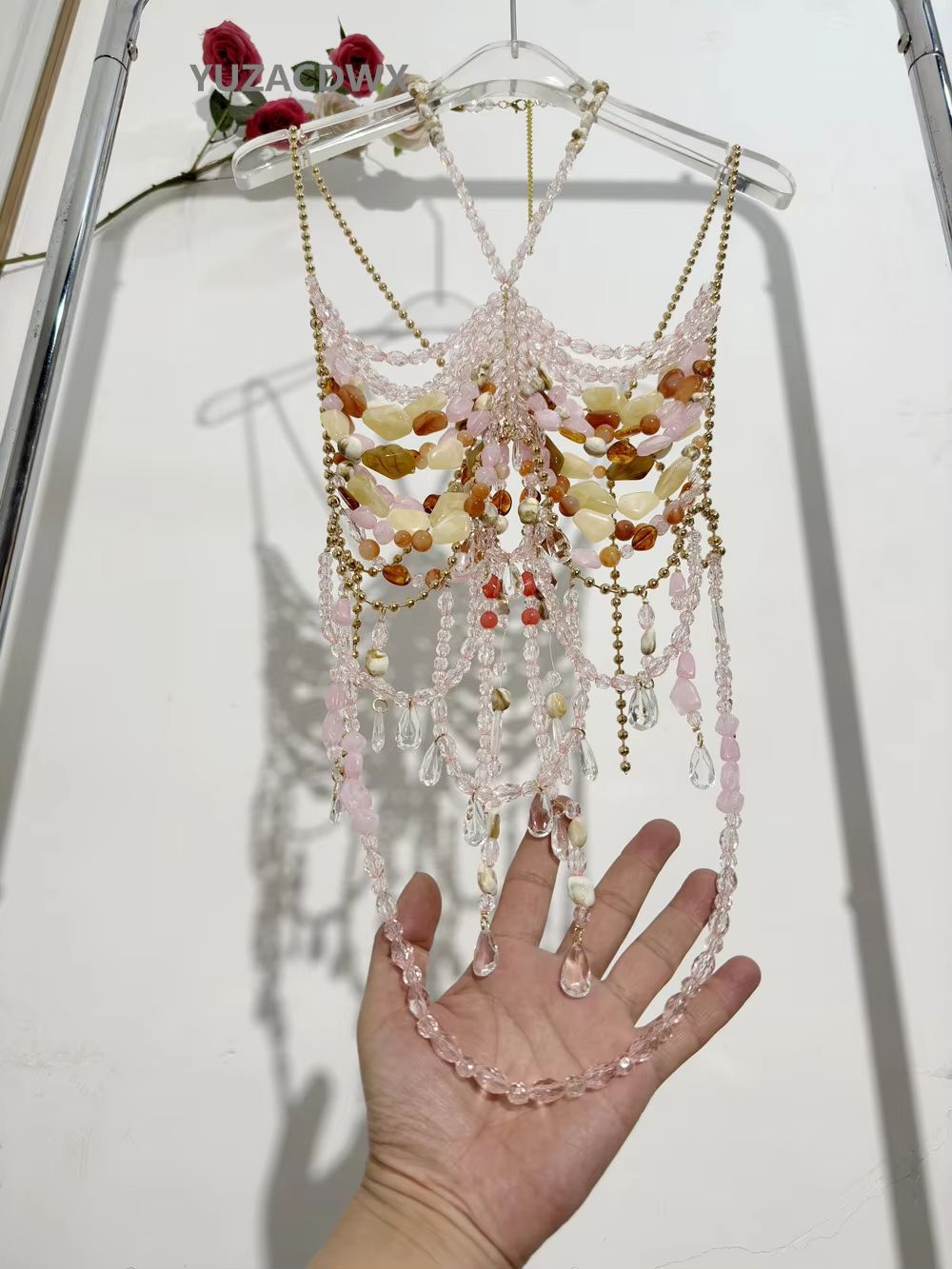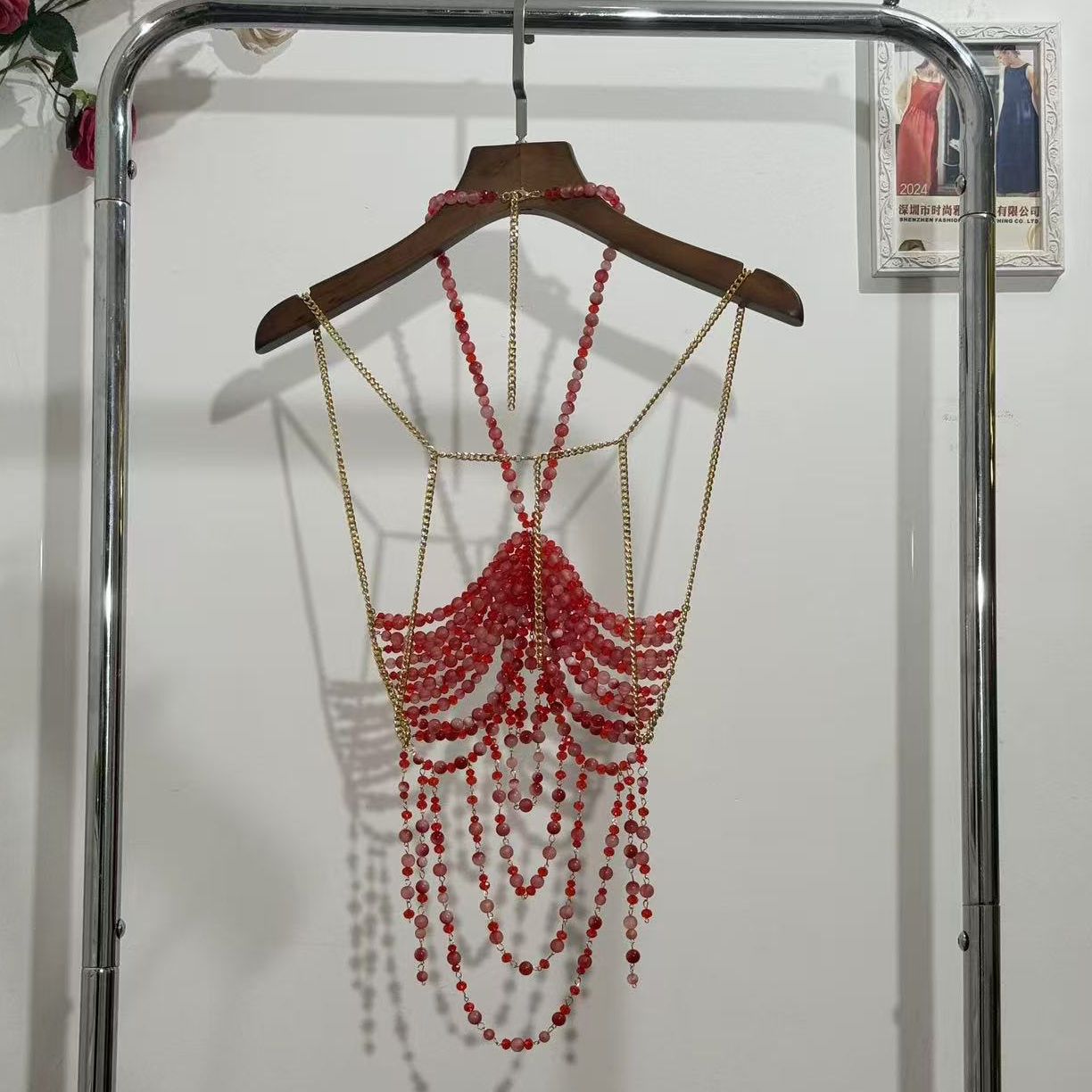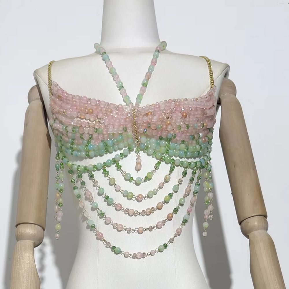 2025 New Women's Necklace Beaded Vest Hollow Out Top Jewelry Exaggerated Pearls Neck Bra Fashion Bra Women's Club Carnival