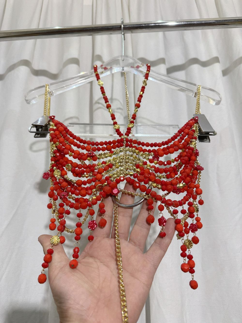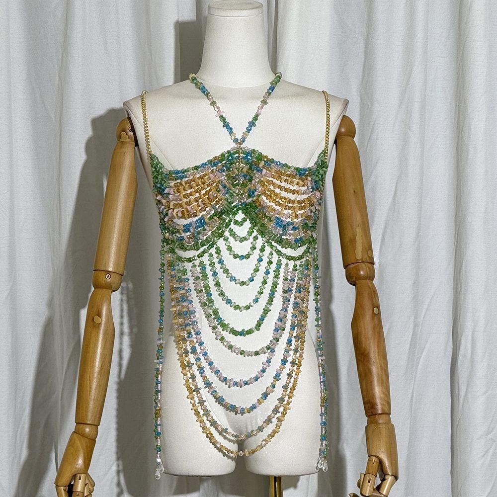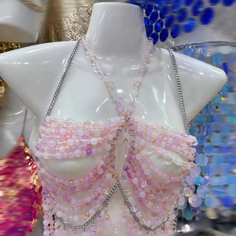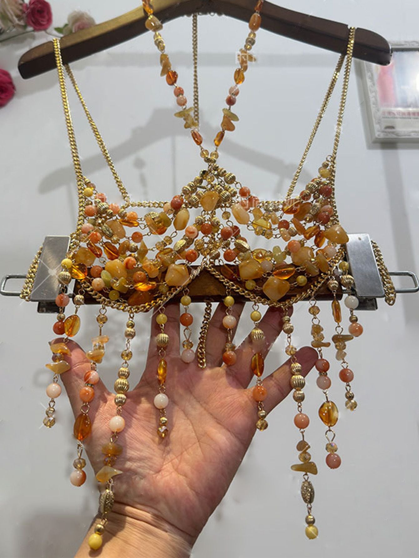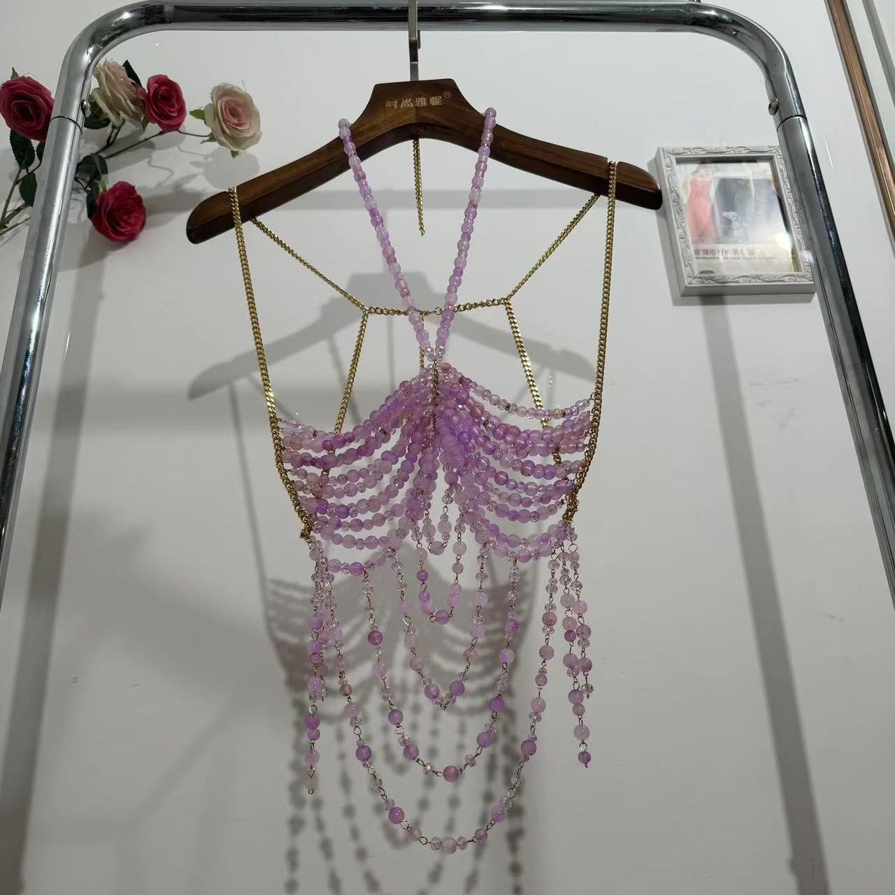 2025 New Women's Necklace Beaded Vest Hollow Out Top Jewelry Exaggerated Pearls Neck Bra Fashion Bra Women's Club Carnival