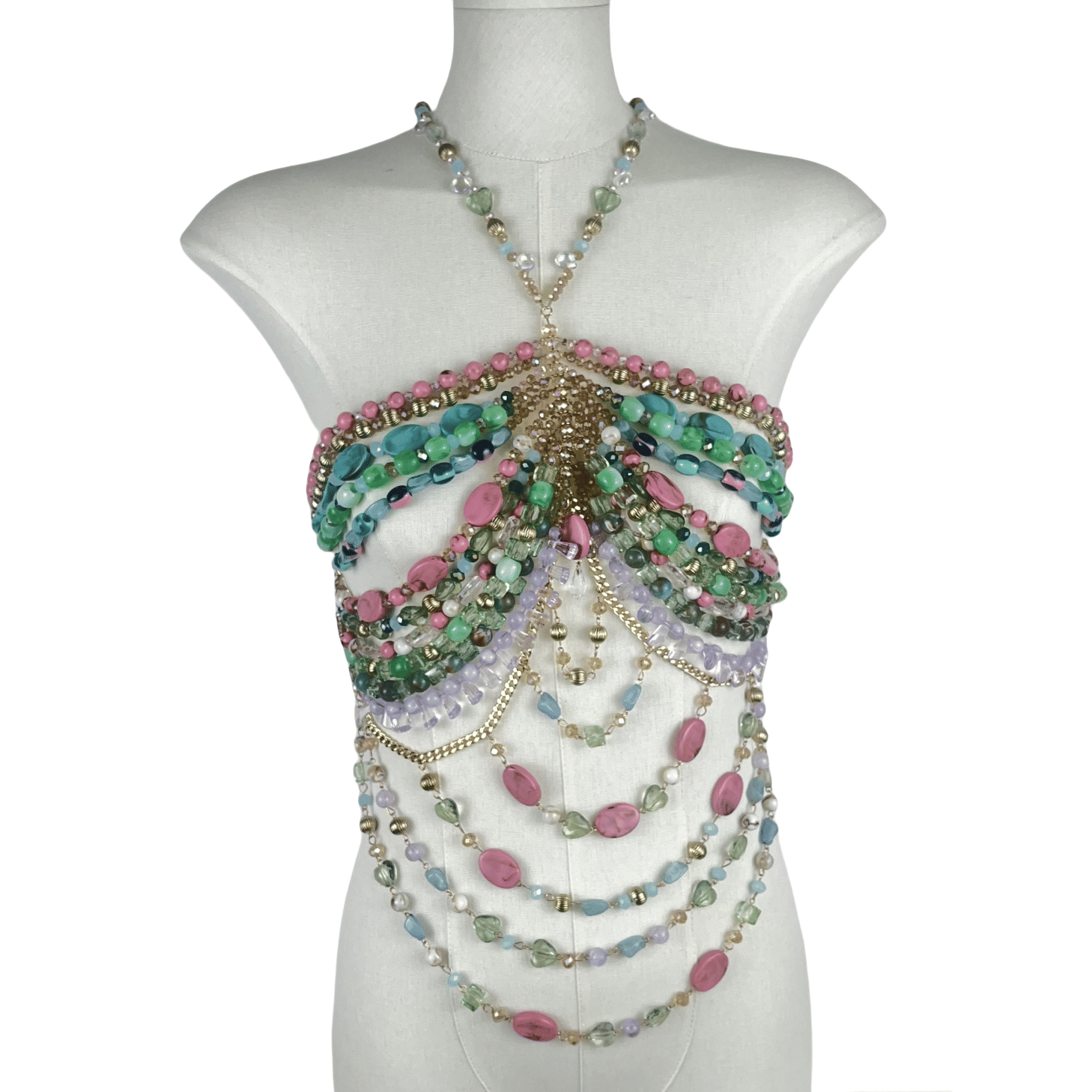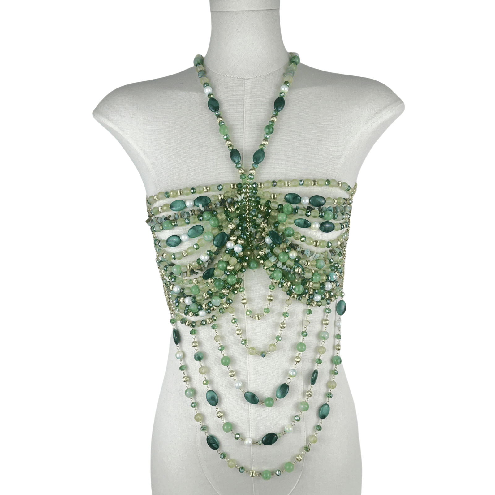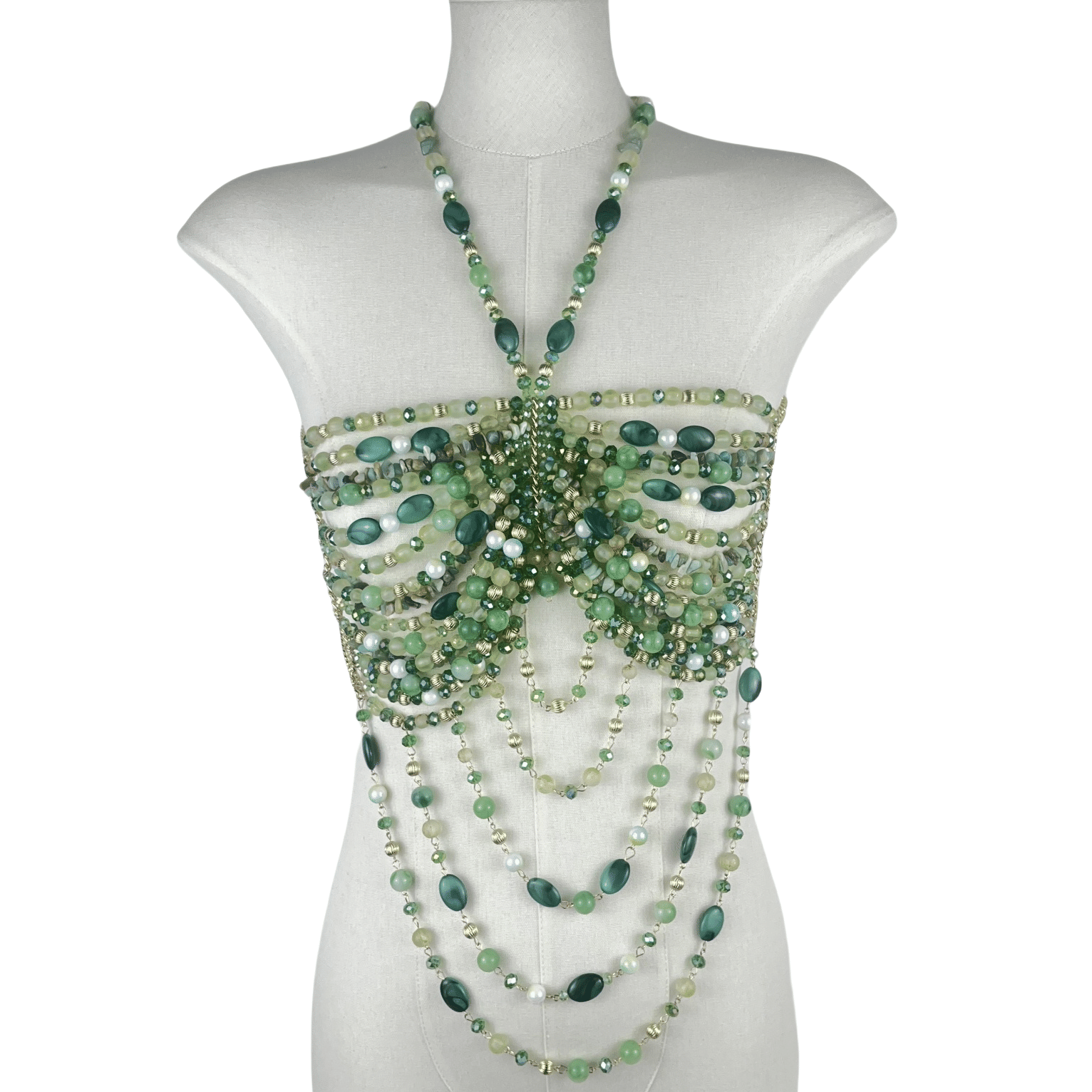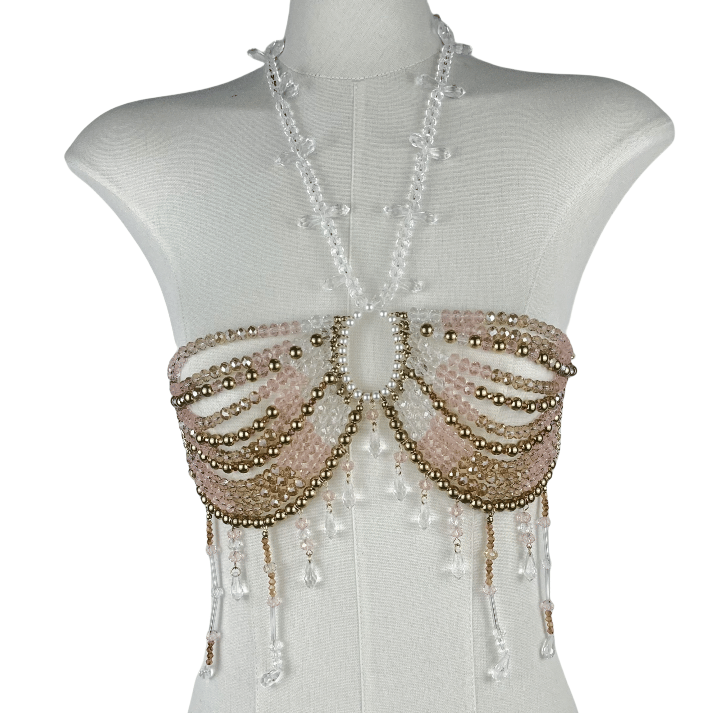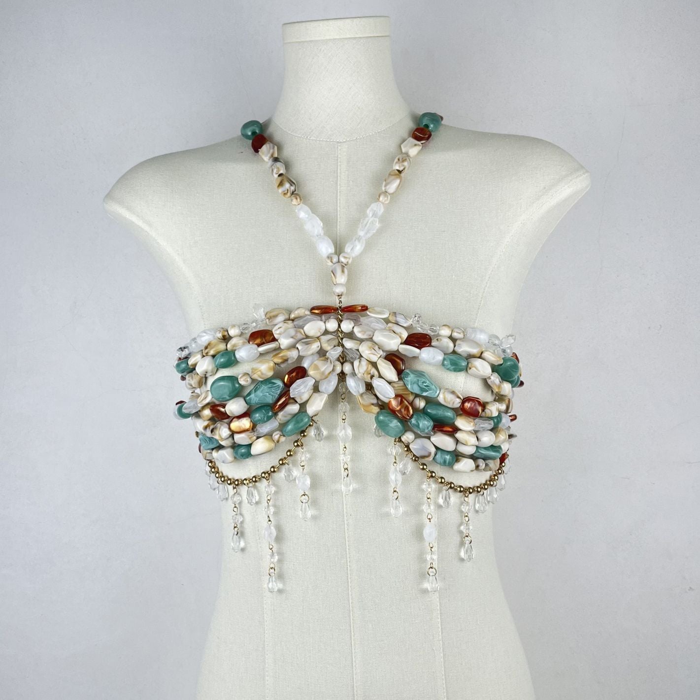 2025 New Women's Necklace Beaded Vest Hollow Out Top Jewelry Exaggerated Pearls Neck Bra Fashion Bra Women's Club Carnival
