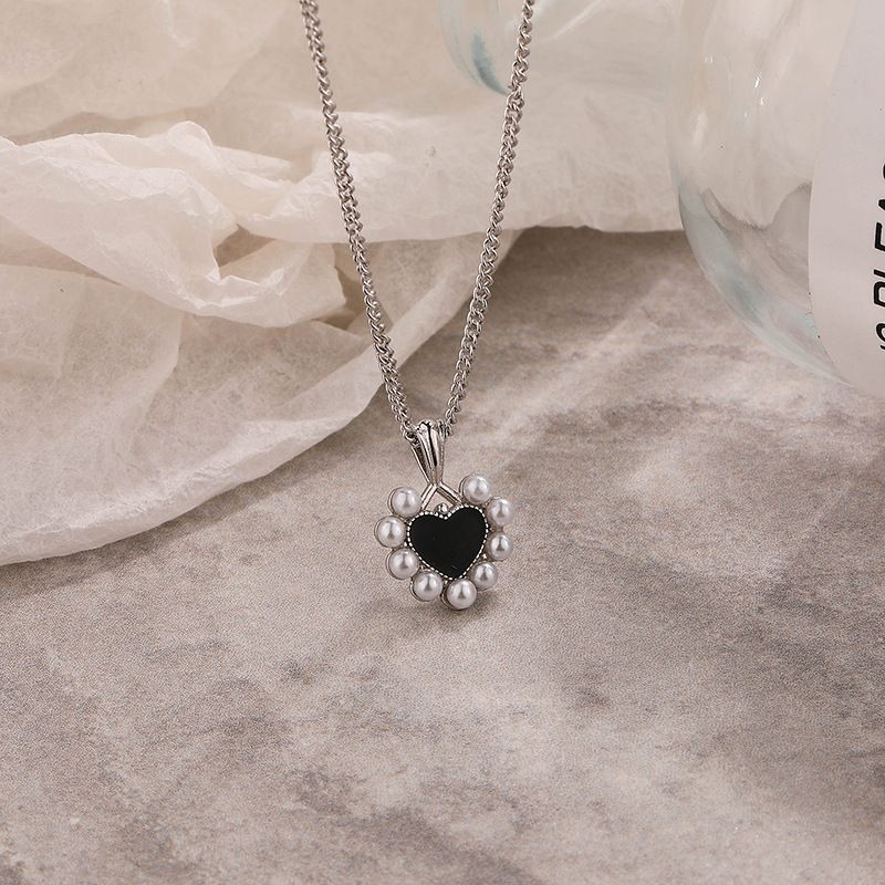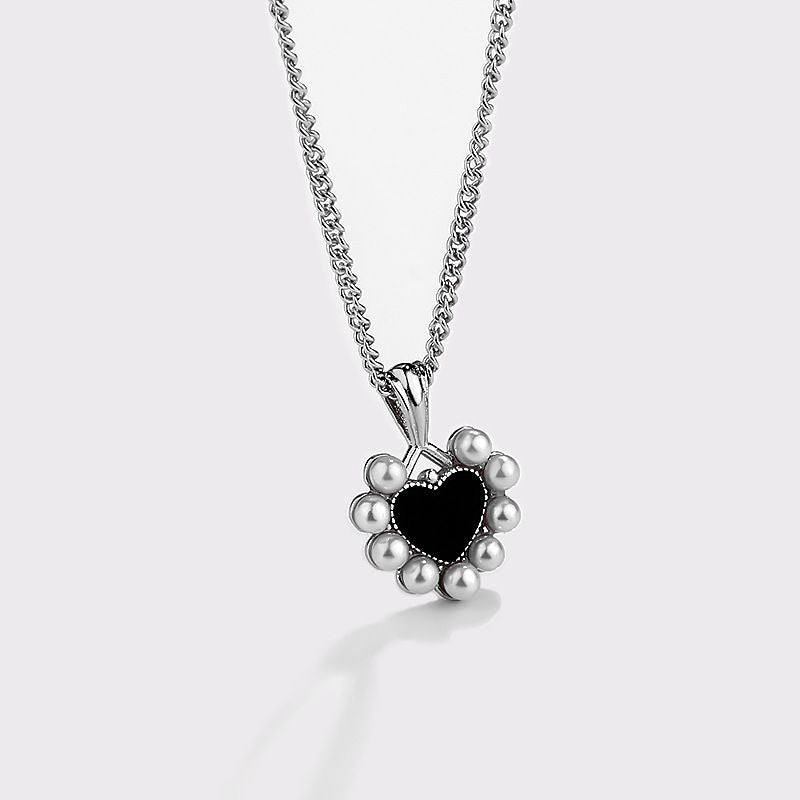 925 Sterling Silver Love Pendant Female European And American Ins Fashion Retro Light Luxury Bead Heart Necklace