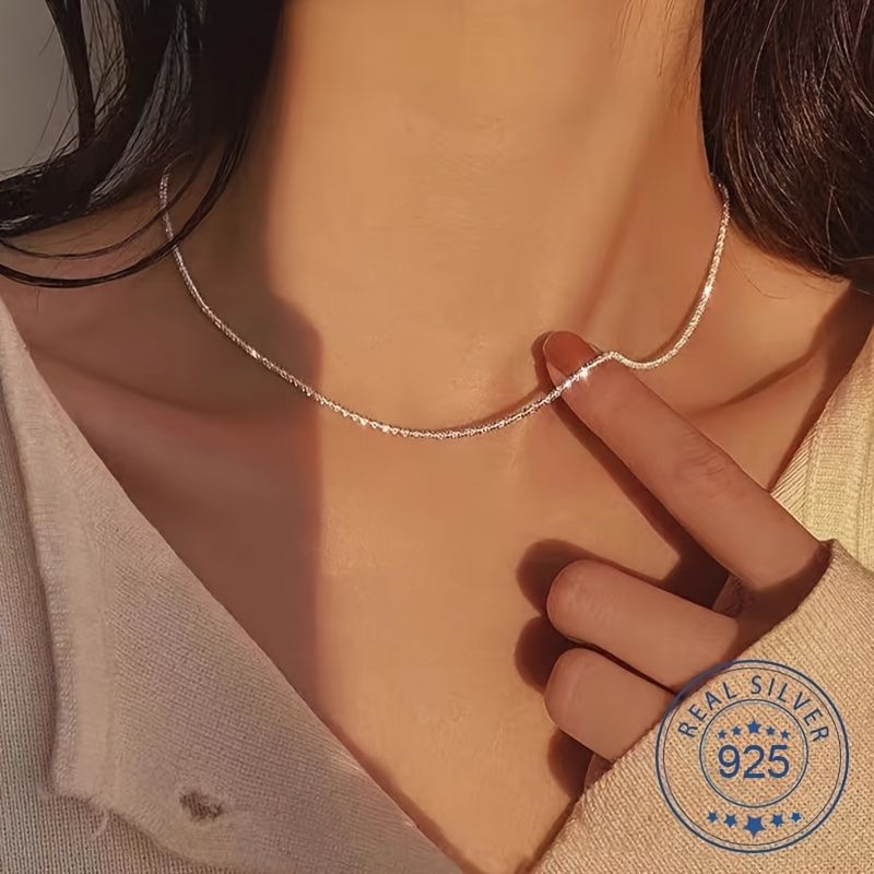 925 Sterling Silver Necklace Female Silver Chain Without Pendant 925 Clavicle Chain Naked Chain Galaxy Chain Thin Chain Stacked