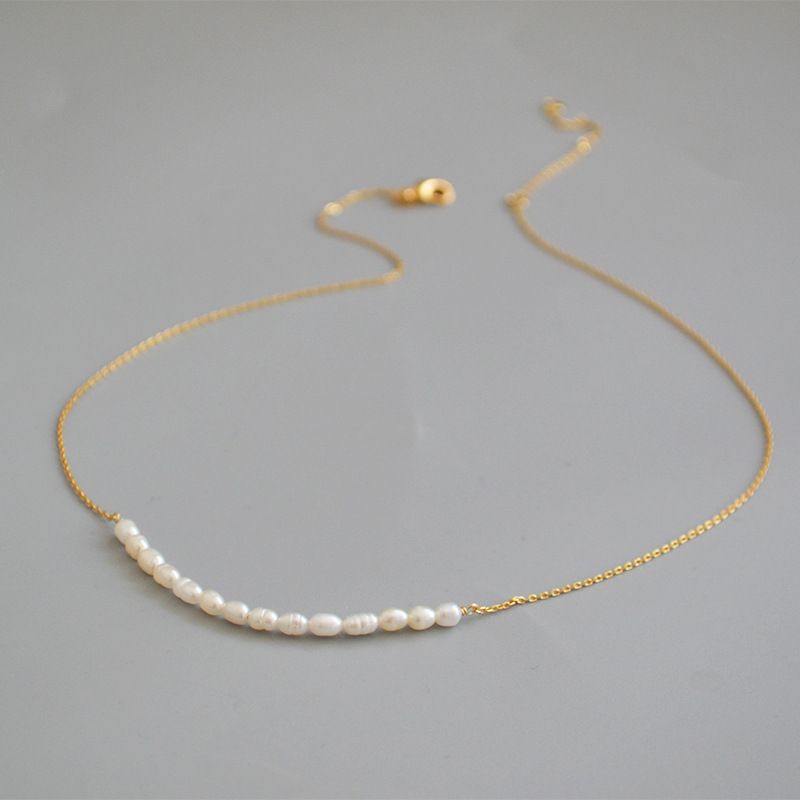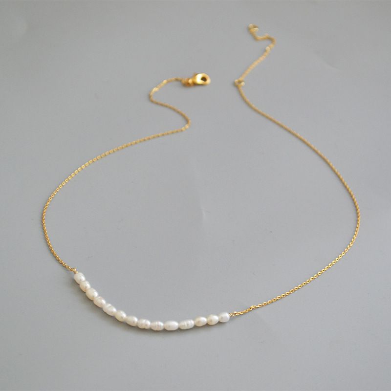 Brass With 18K Gold Natural Real Pearl Necklace Wowen Jewelry Party Designer T Show Runway Gown Japan Korean Fashion