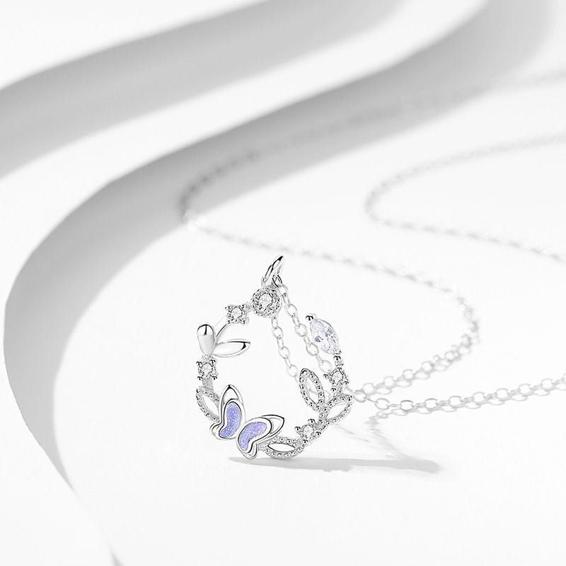 Butterfly Necklace Women's Mori Department Niche Design Personality Fashion Glazed Clavicle Chain Simple, Delicate And Cute Jewelry