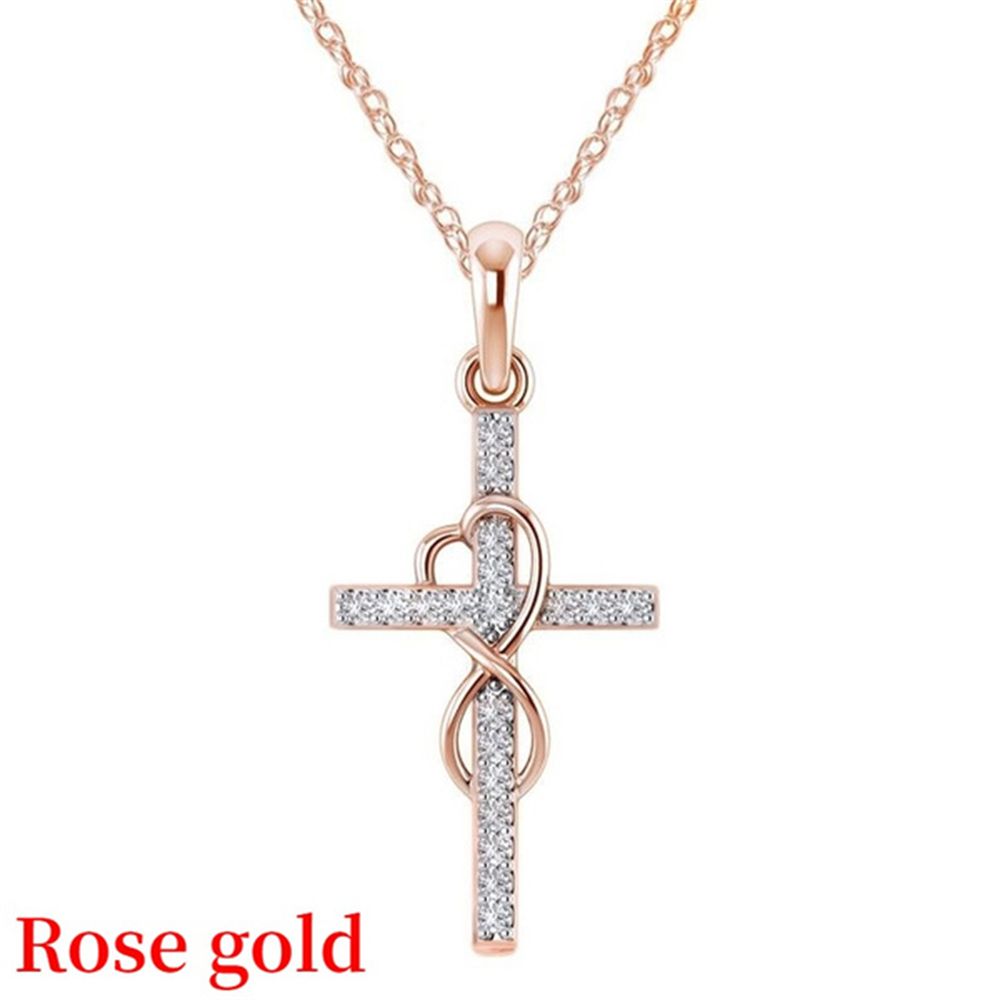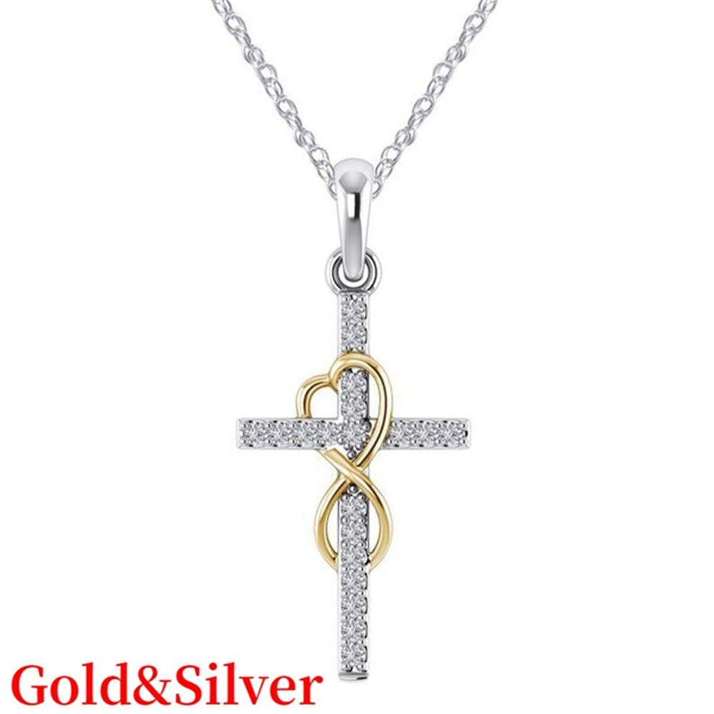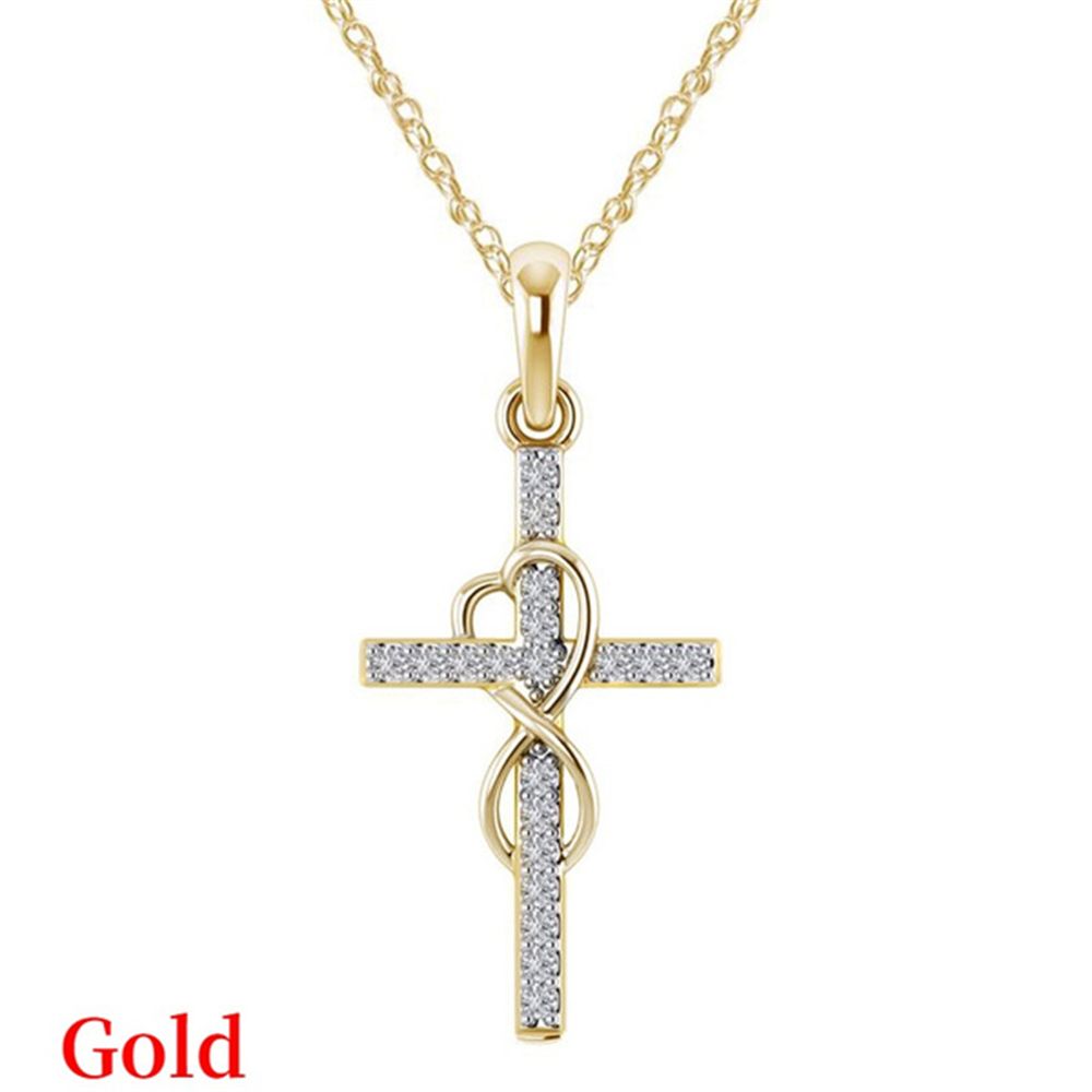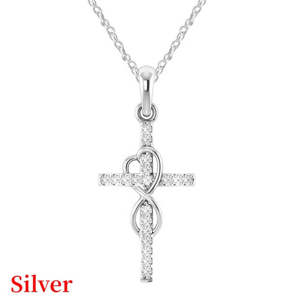Classic Women Crystal Cross Necklace For Women fASHION Heart Infinity Pendant Necklace Religious Jewelry Christian Baptism Gift