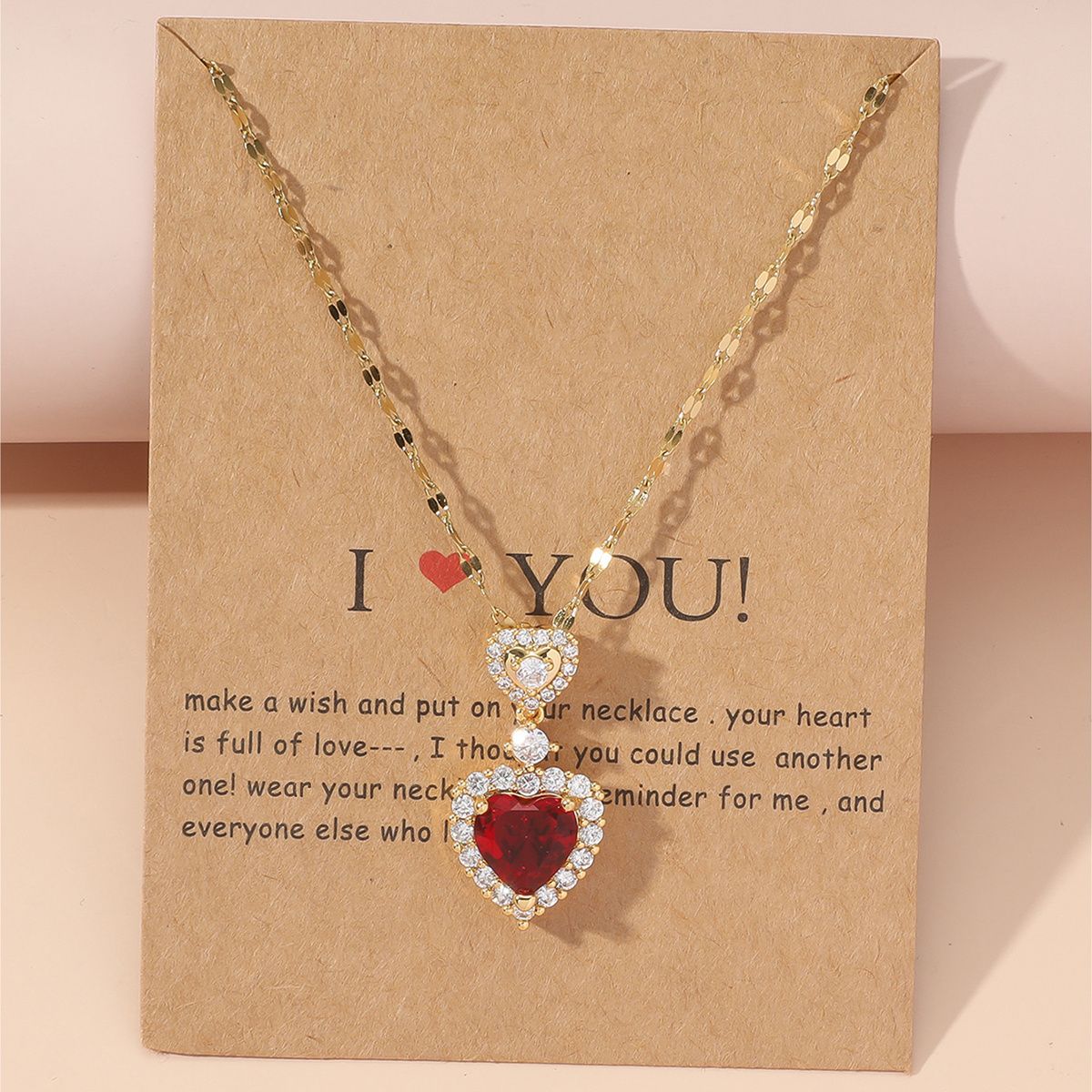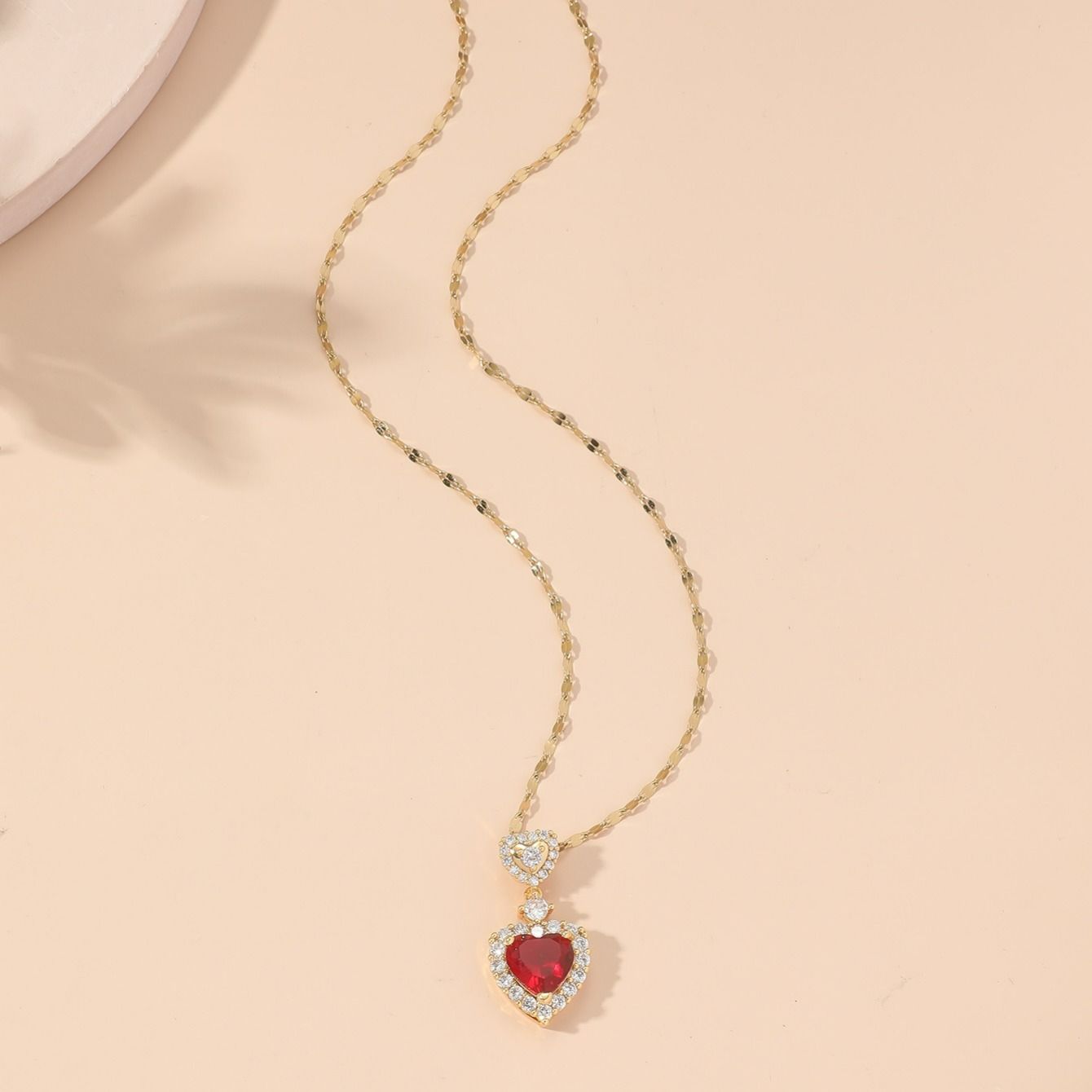 Copper Zirconium Heart Pendant Ladies Necklace