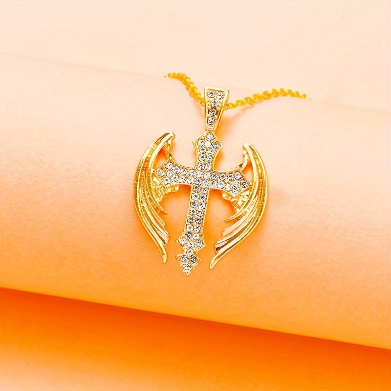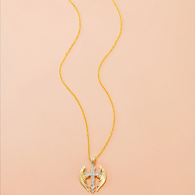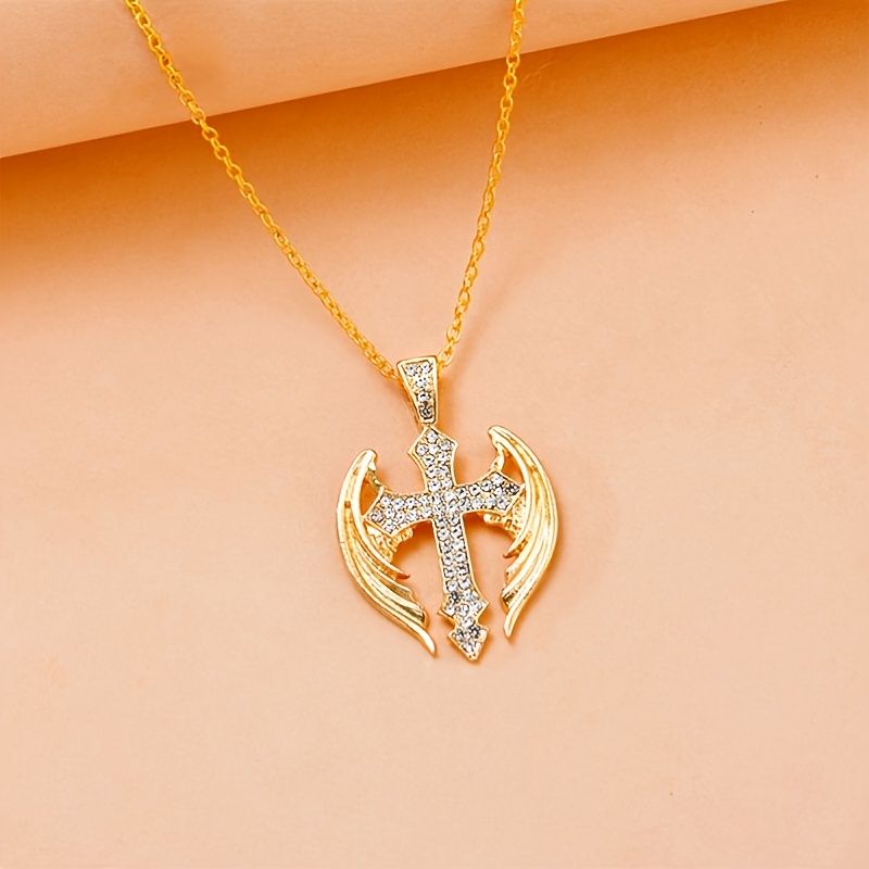 Creative Elegant Angel Cross Women's Pendant Necklace Rhinestone Pendant Women Jewelry Anniversary Birthday Gift
