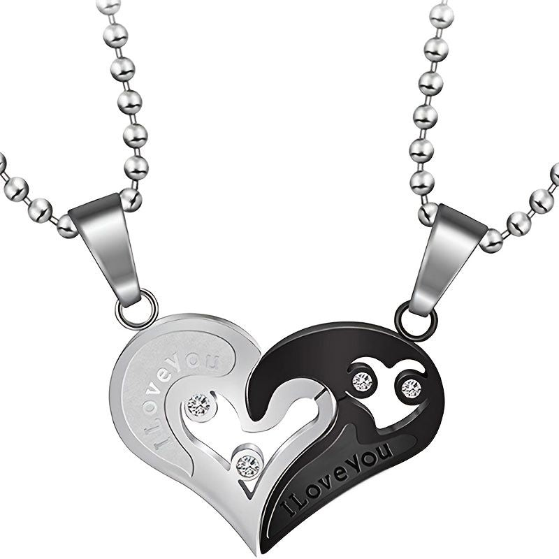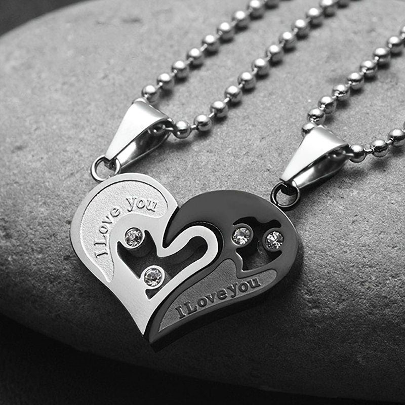 Elegant I Love You Stainless Steel Necklace Duo for Couples