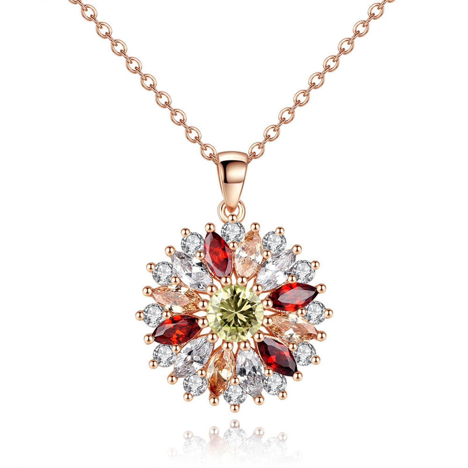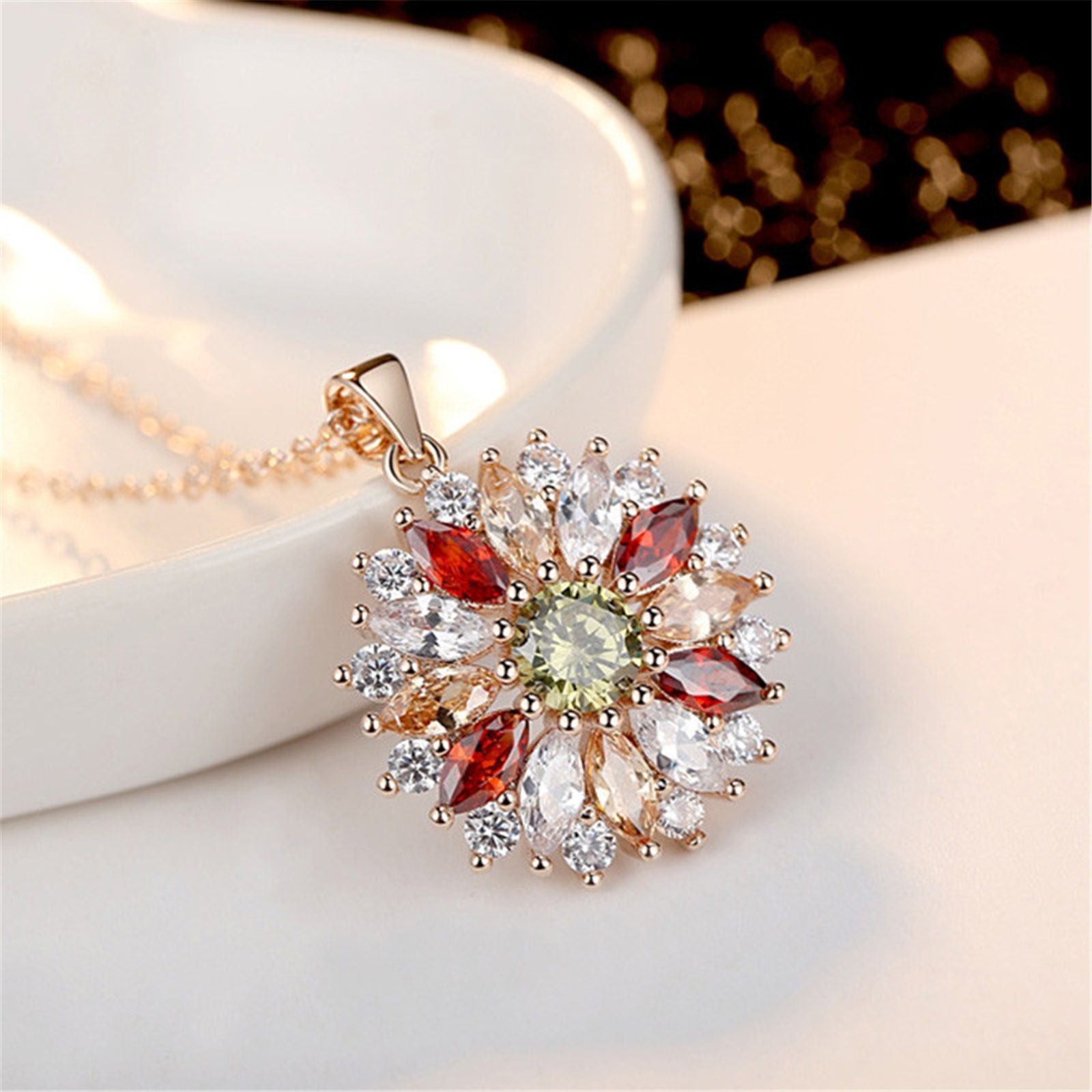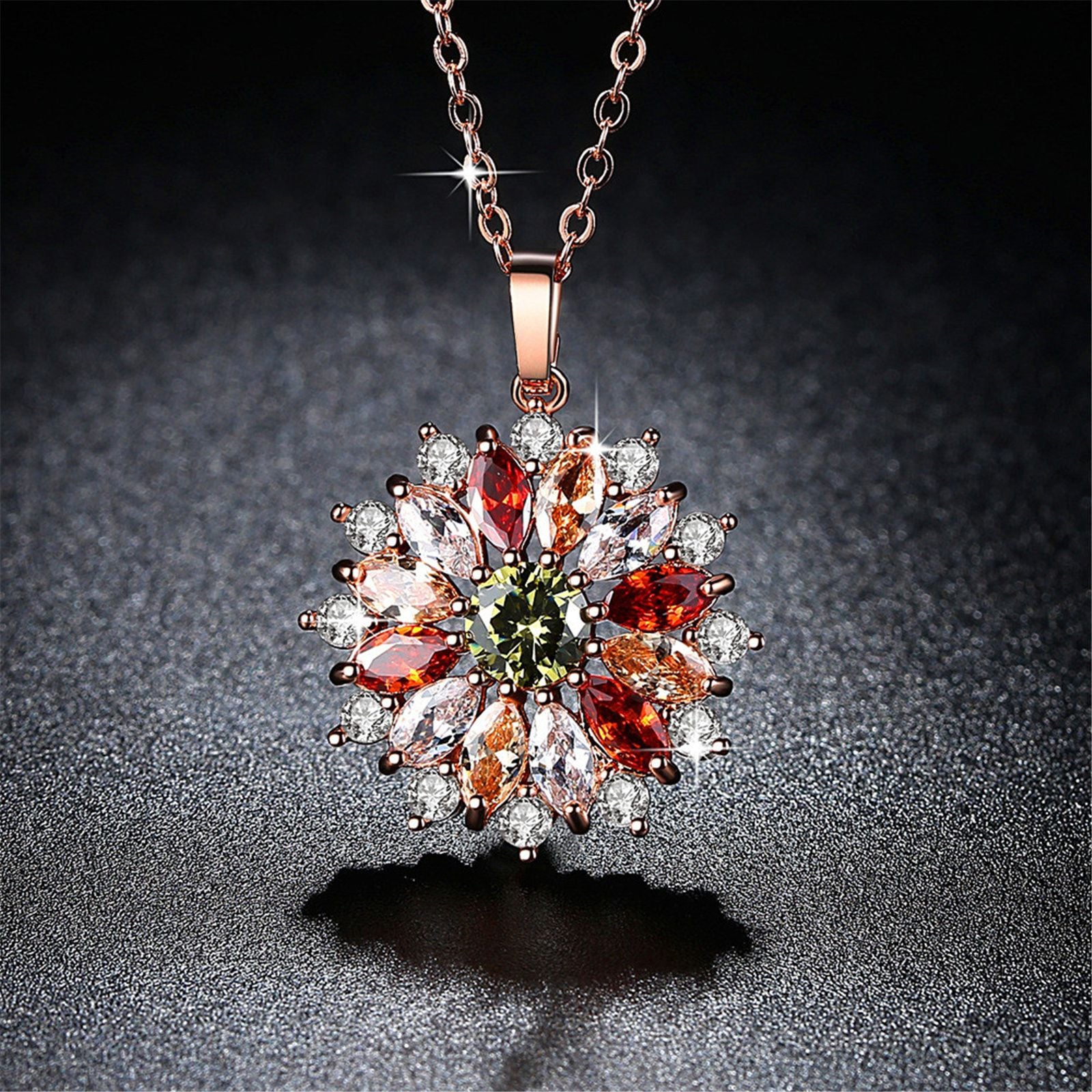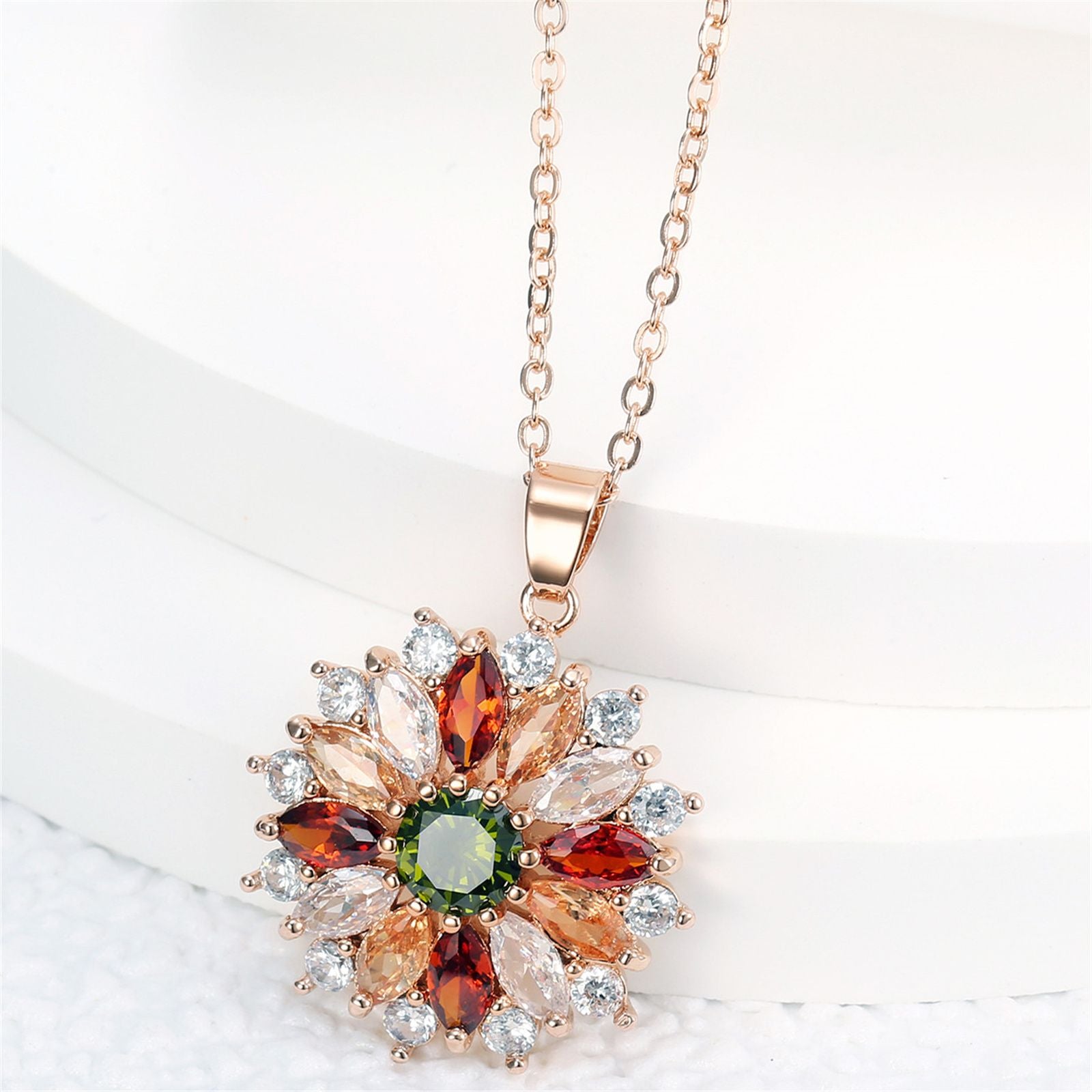 Elegant Temperament Colorful Zircon Flower Women's Pendant Necklace Mother's Day Jewelry