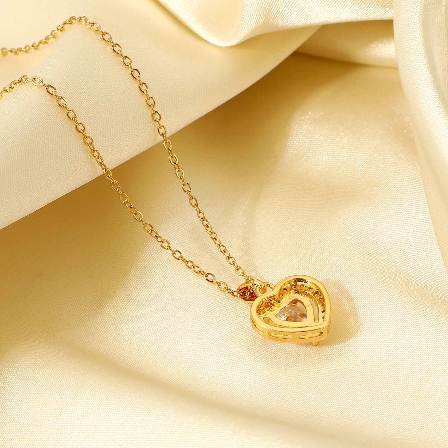 Exquisite Women's Wedding Jewelry Stainless Steel Gold Large Single Sparkling Crystal Heart Pendant Engagement Necklace For Women