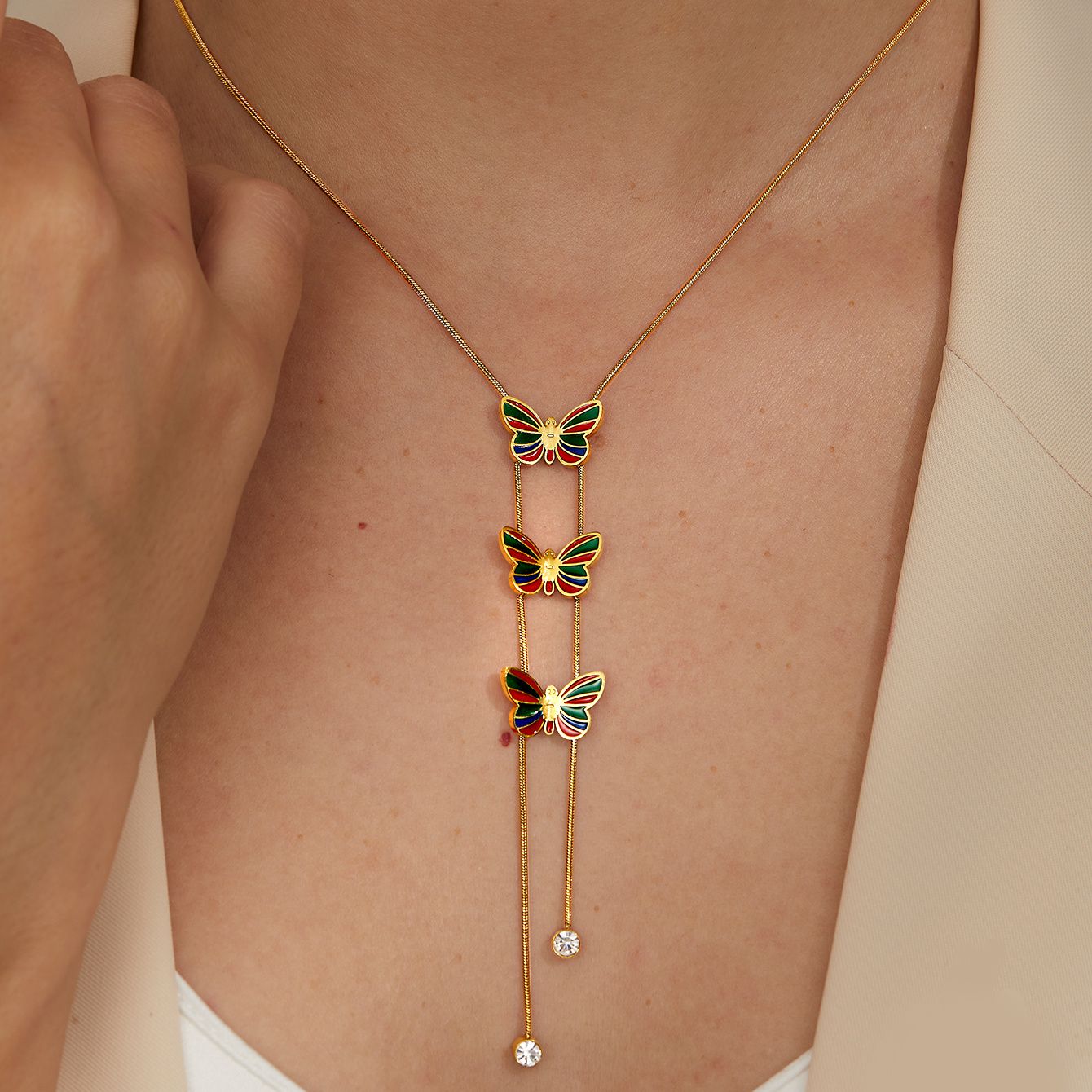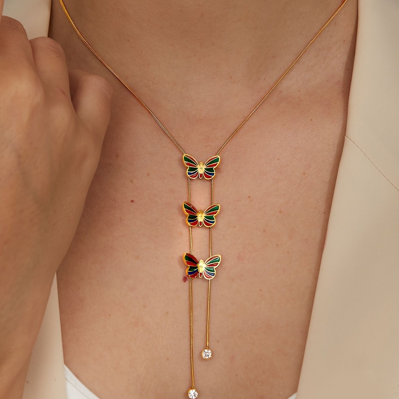 Fashion Colorful Enamel Butterfly Necklace Jewelry Women Fine Jewelry Exquisite Women's Accessories
