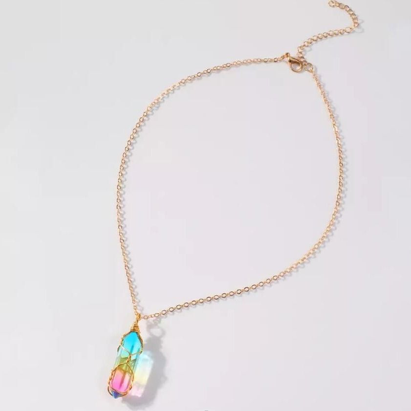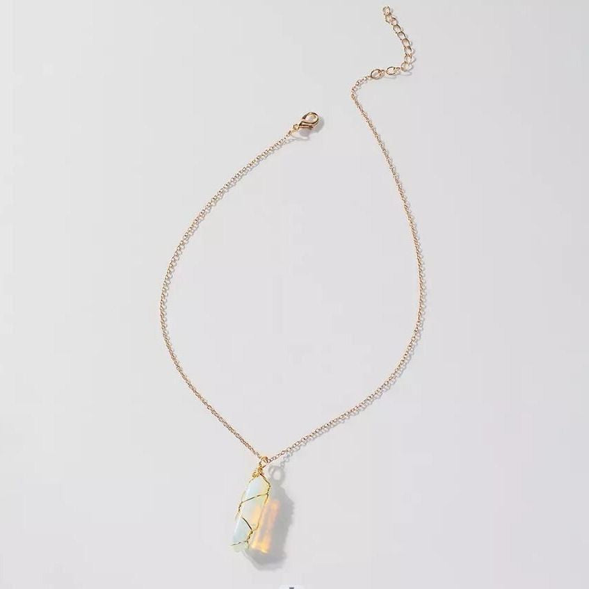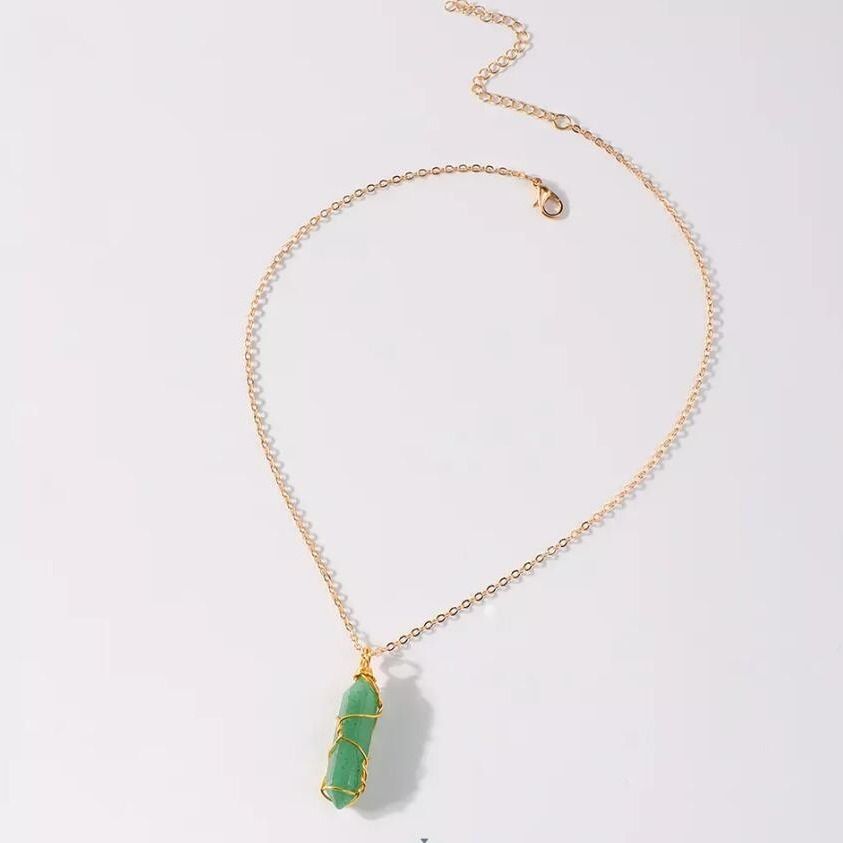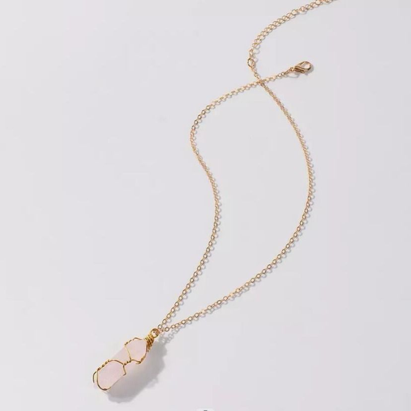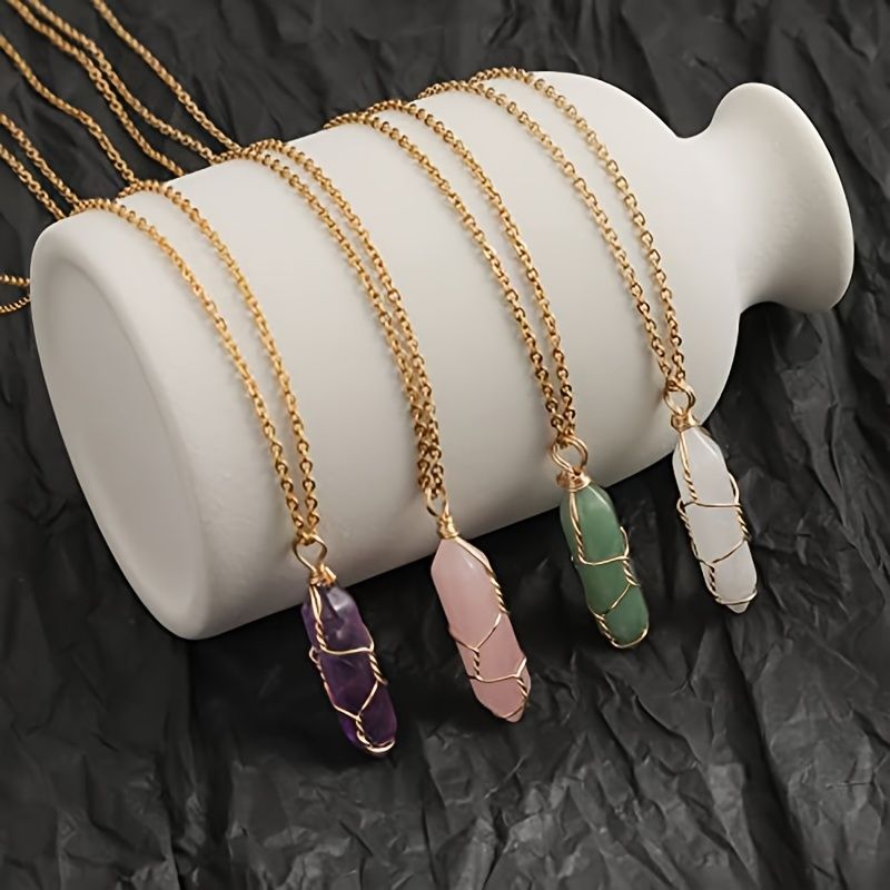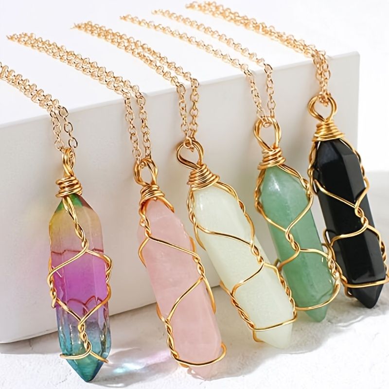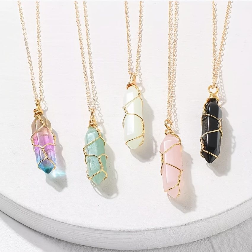 Hand-wound Hexagon Pendant Necklace Natural Stone Crystal Necklace Lucky Stone Necklace