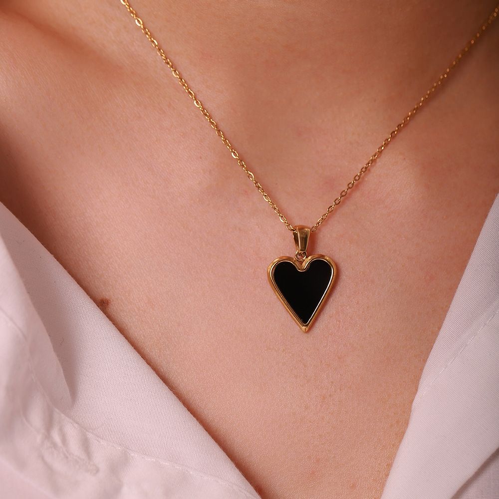 Ins Style 18k Gold White Shell/green Malachite/black Shell Love Pendant Necklace Titanium Steel Jewelry Women