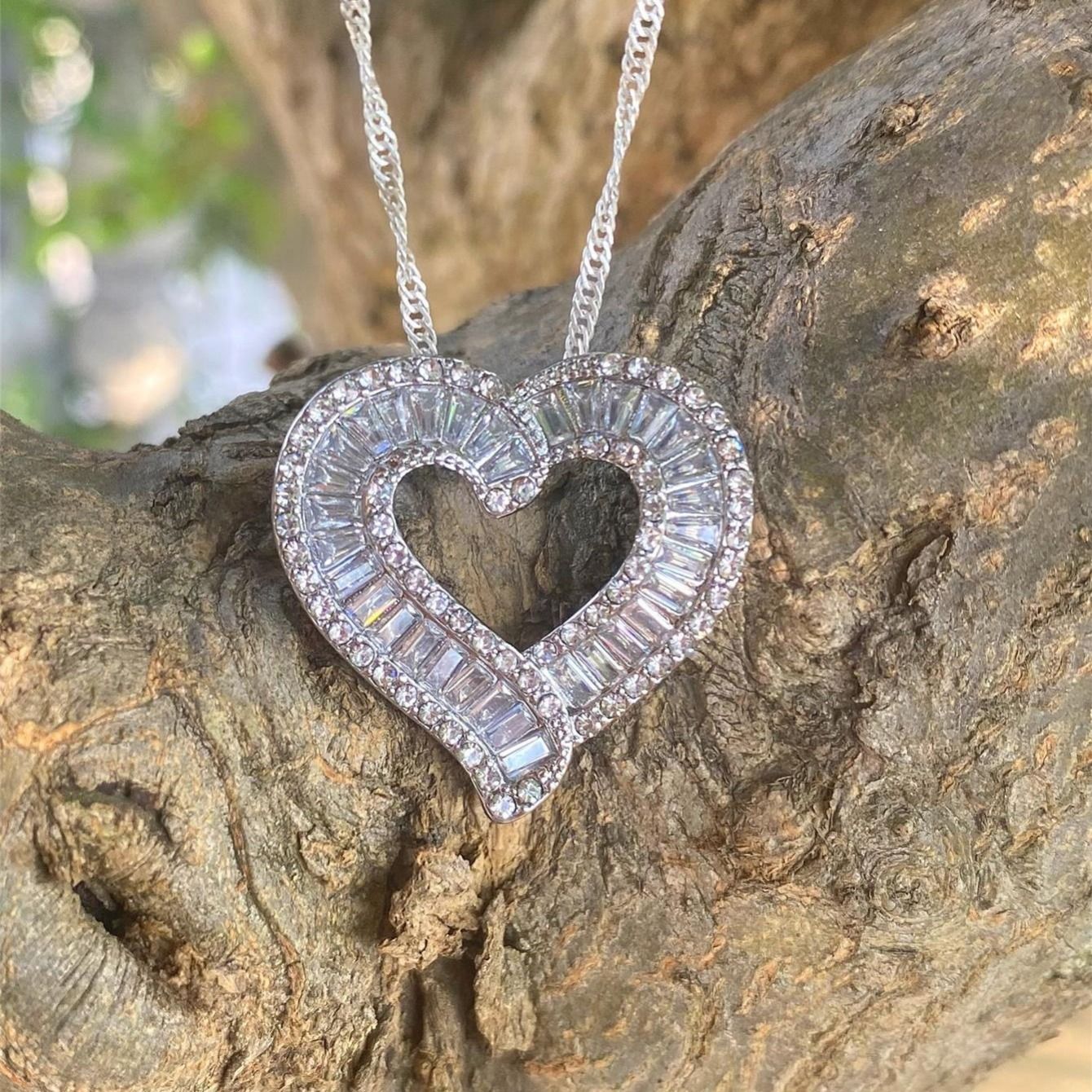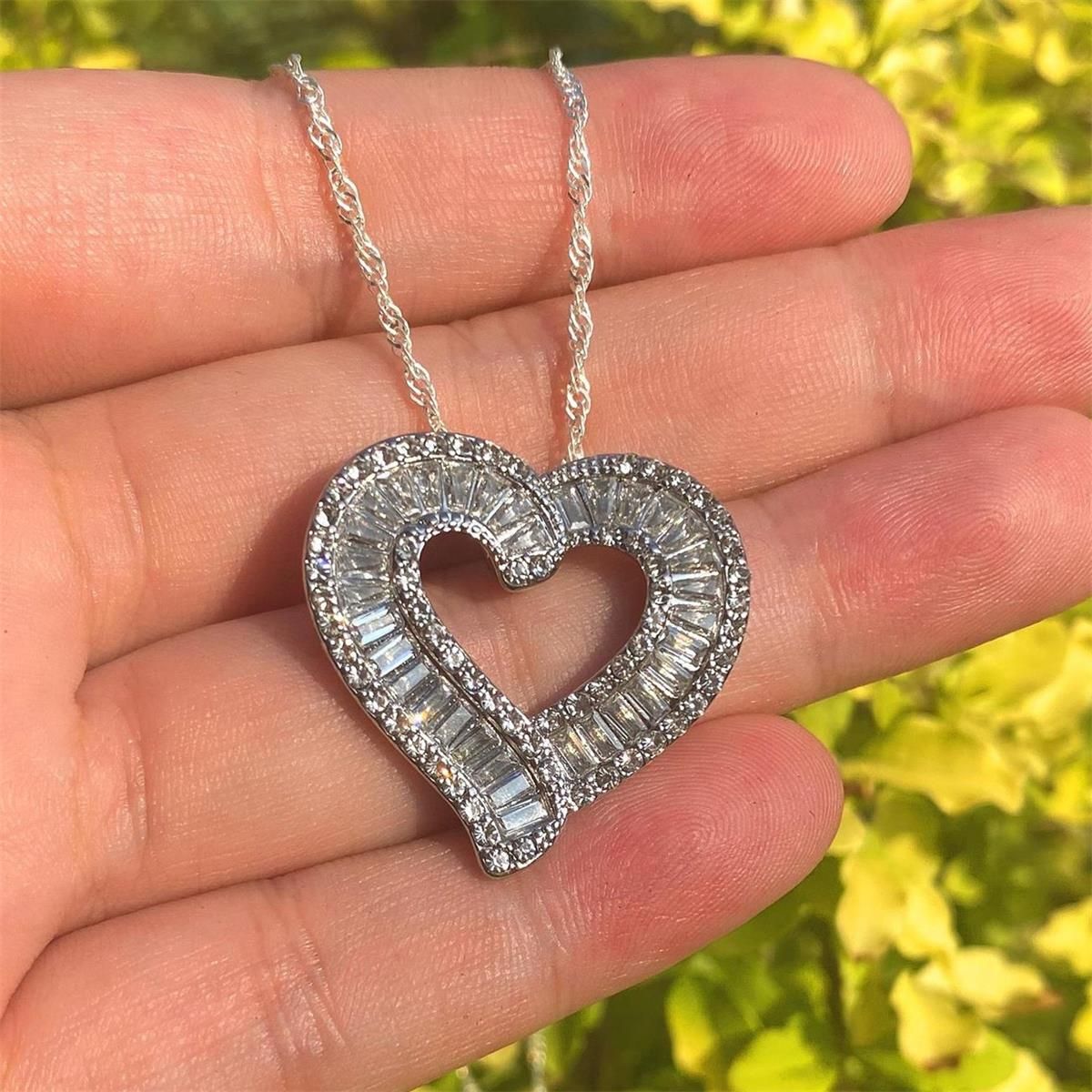 Luxury Heart Shaped White Full Faux Diamond Zircon Women's Pendant Necklace; Romantic Gift Valentine's Day