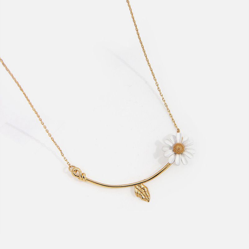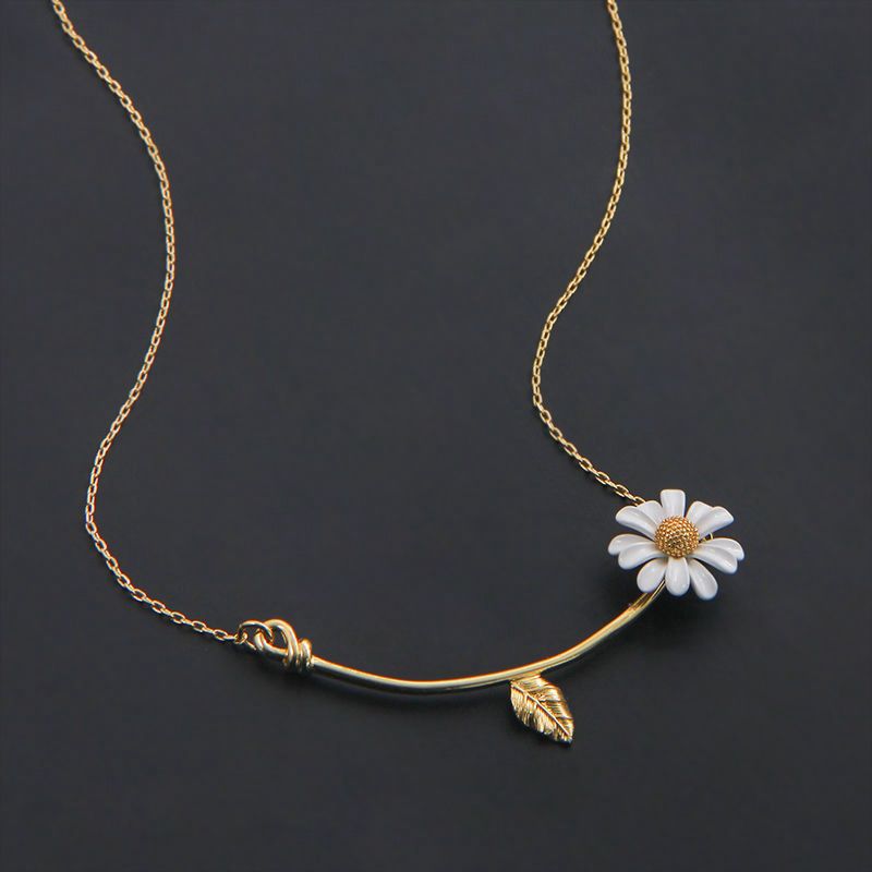 Women Daisy Pendant Necklace Gold Color Clavicle Chain Cute White Flower Fashion Dainty Metal Girls Party Wedding Jewelry Gifts