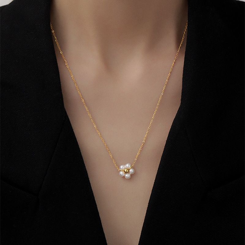 High quality glass pearls (non natural), rope woven small flowers, with knotted joints