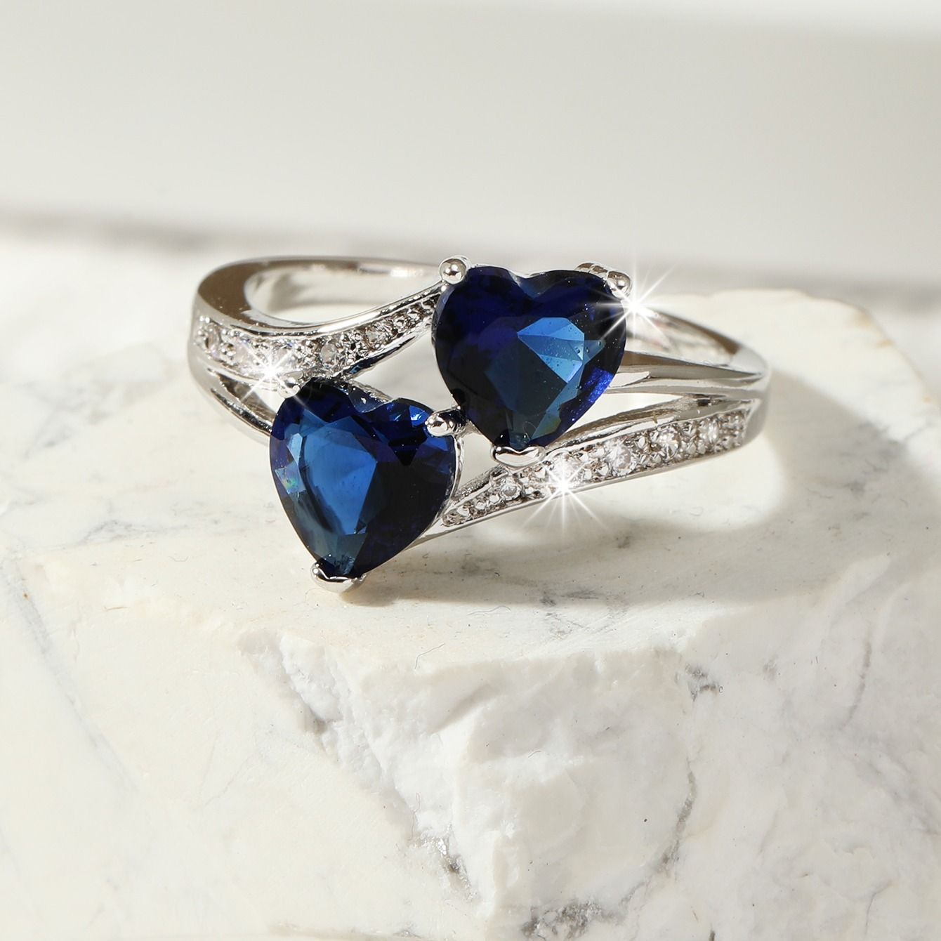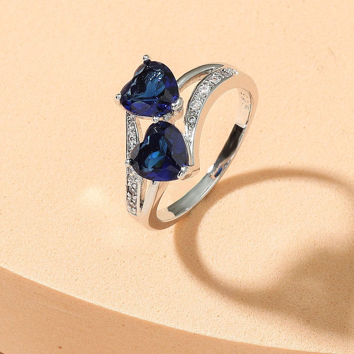1pc LOVE Heart Shaped Artificial Sapphire Glass Wedding Ring