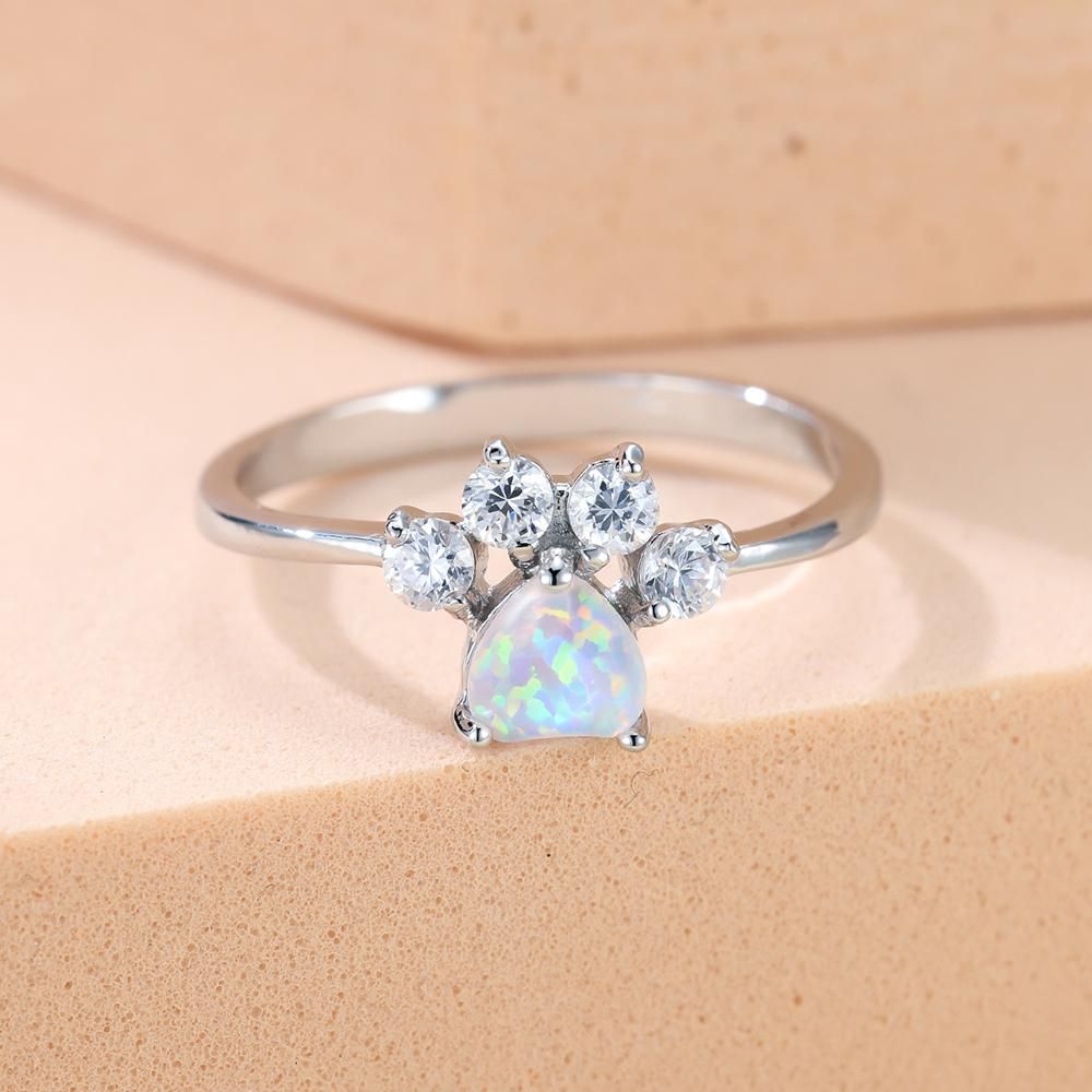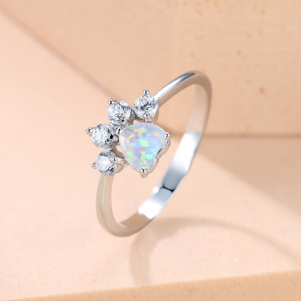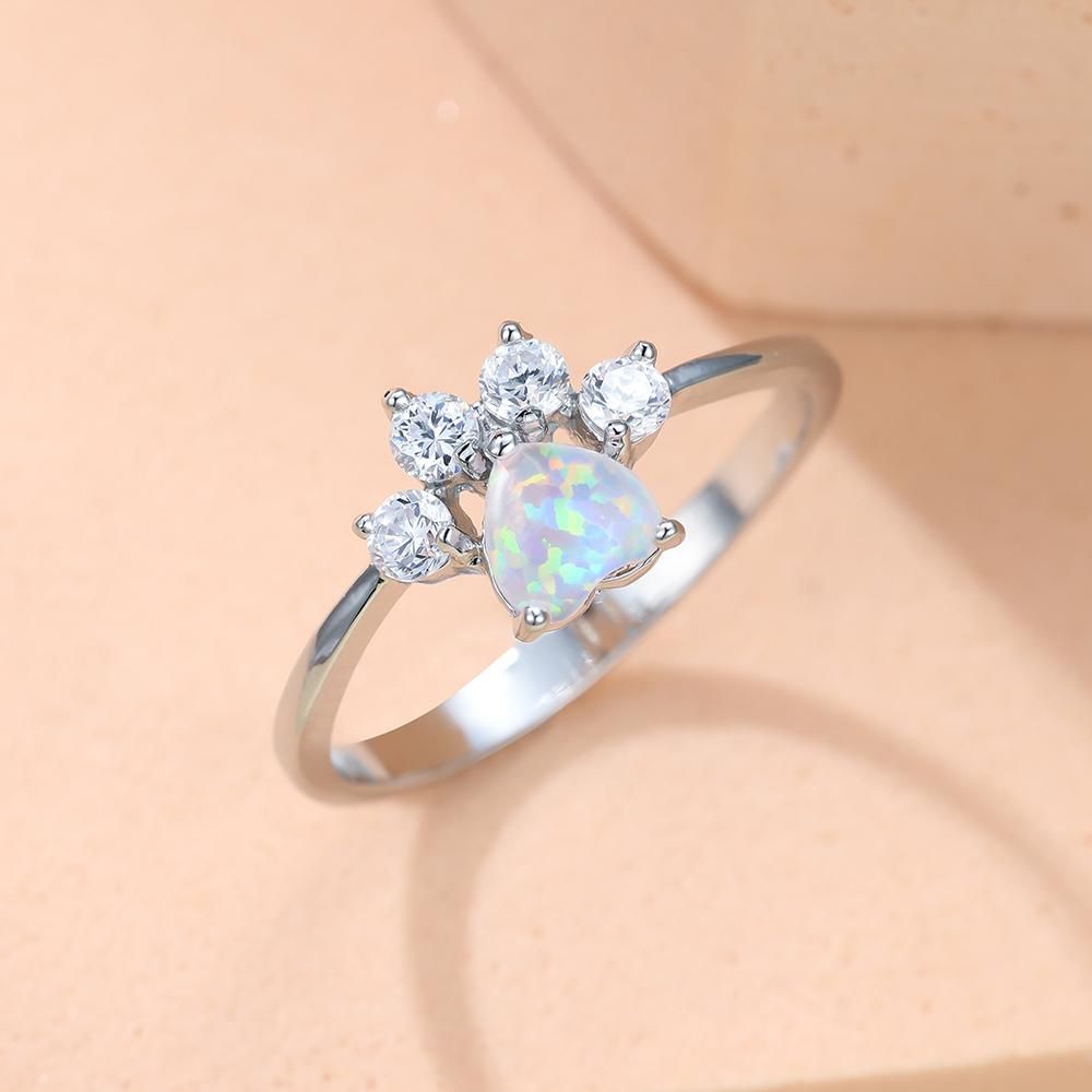 Cat Paw Ring Inlaid Colorful Synthetic Gems Elegant Finger Ring For Women & Girls Promise Engagement Ring