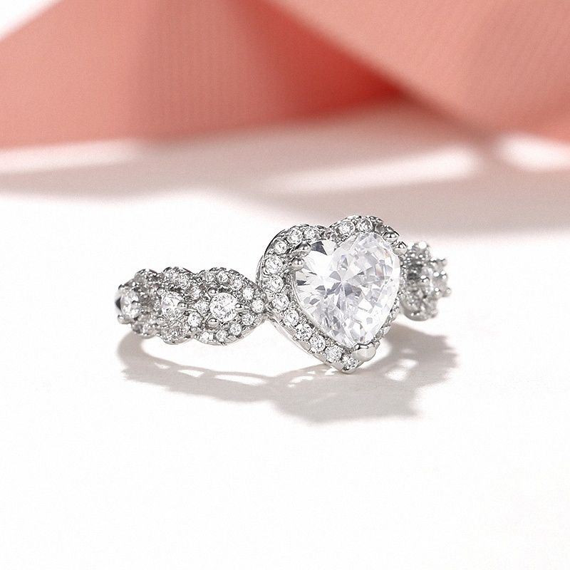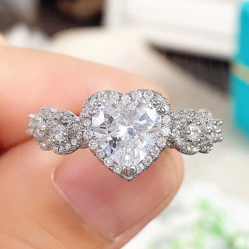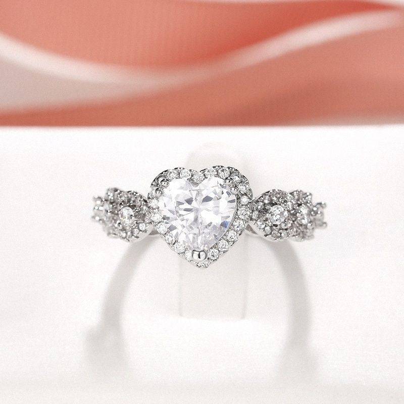 Delicate 925 Silver Plated Micro Pave Zircon Heart Cut White Crystal Rings For Women Bridal Romantic Engagement Proposal Gift