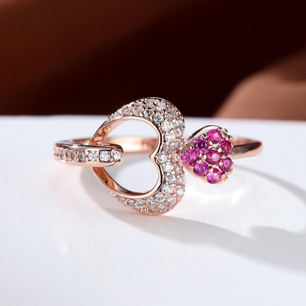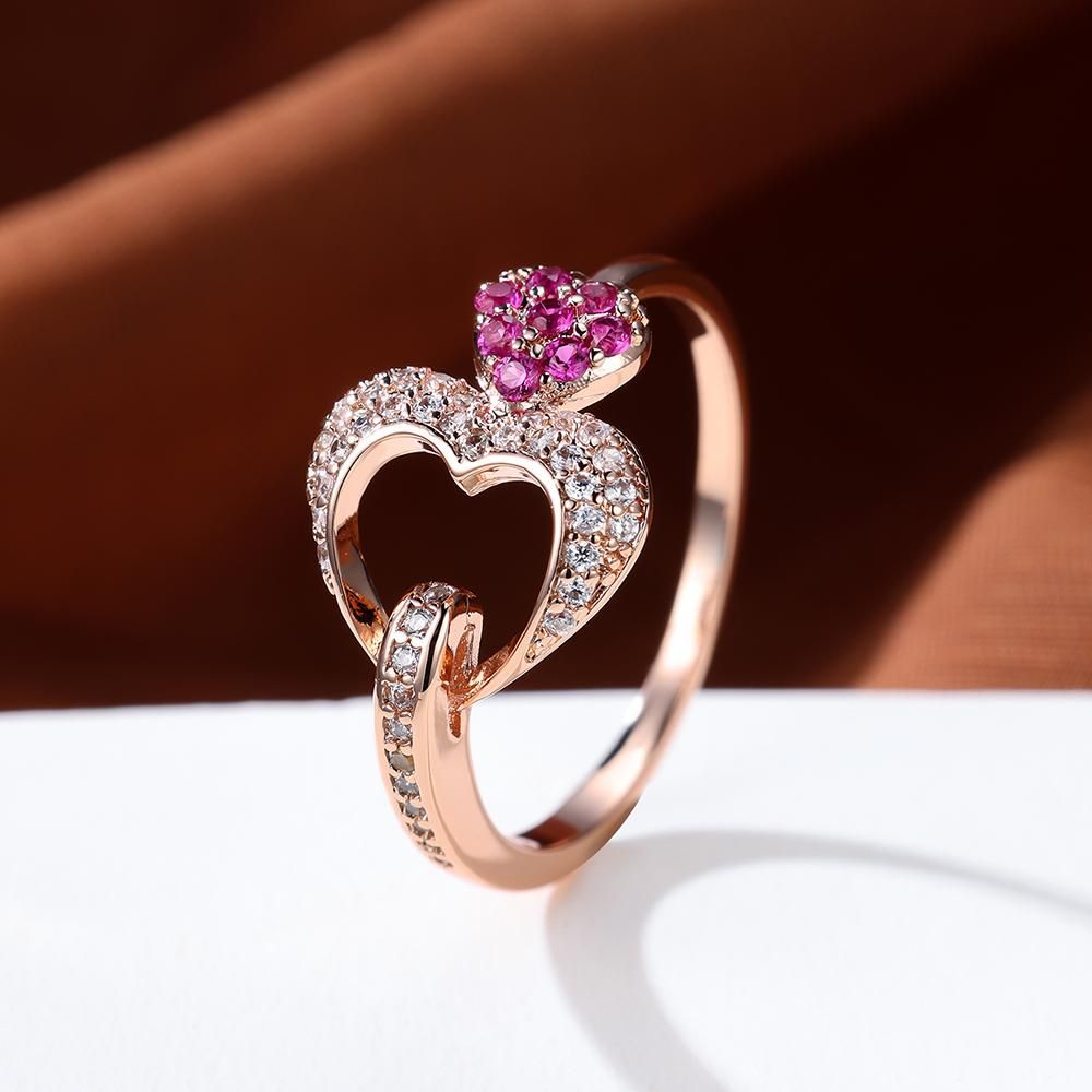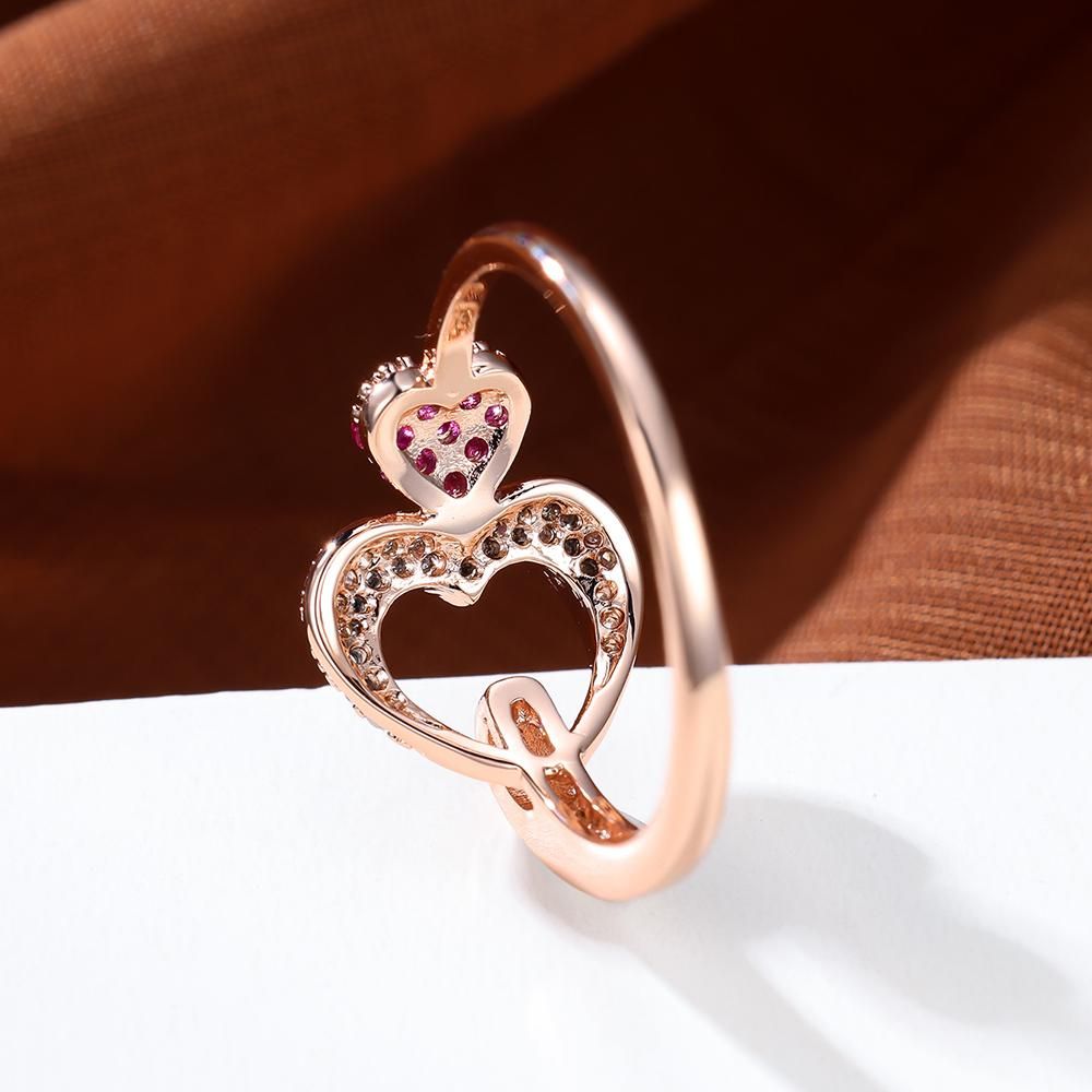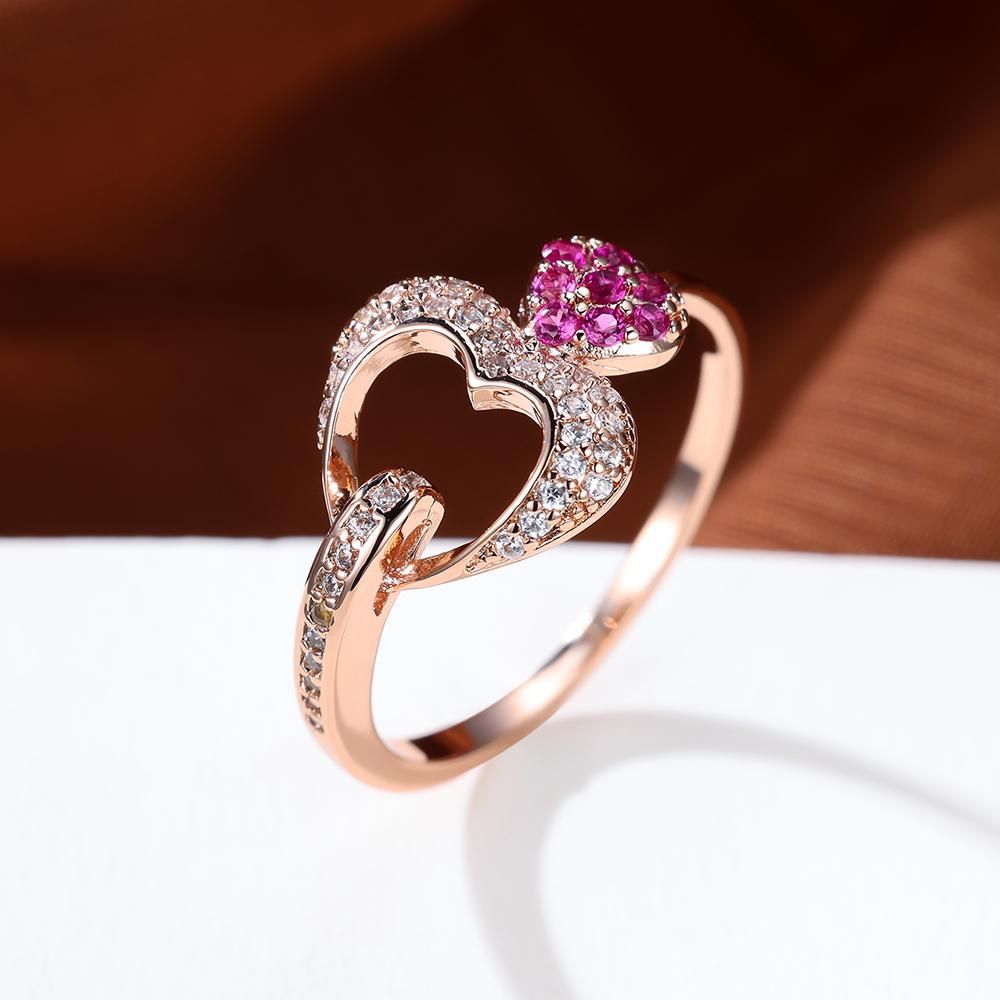 Delicate Double Heart Shape Ring Inlaid Pink Zircon 18K Gold Plated Hand Decoration For Women Valentine's Day Jewelry