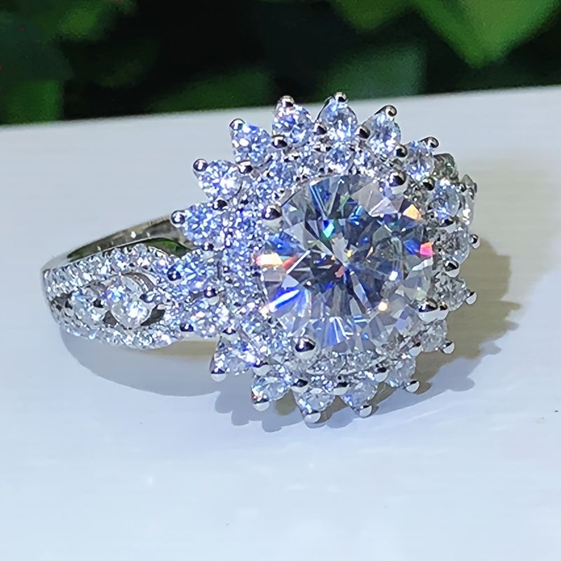 Elegant 925 Silver Plated Round Shaped Crystal Zircon Ring For Women Anniversary Party Wedding Accessories Jewelry