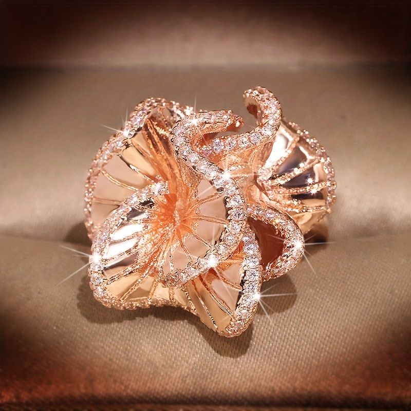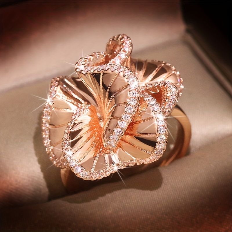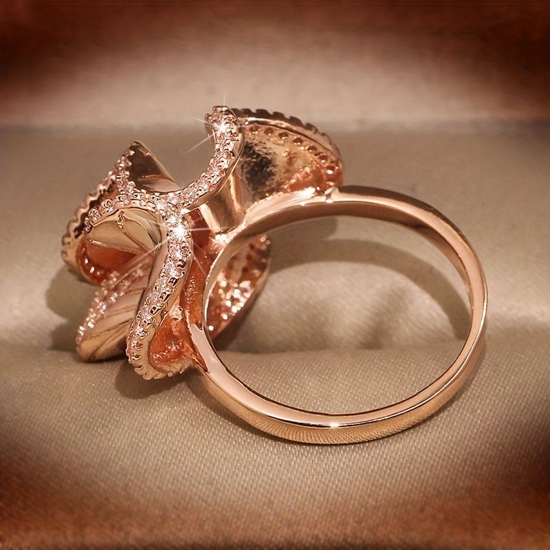 Elegant Camellia Flower Wedding Ring Inlaid Shiny Zircon Engagement Bridal Ring Trendy Jewelry