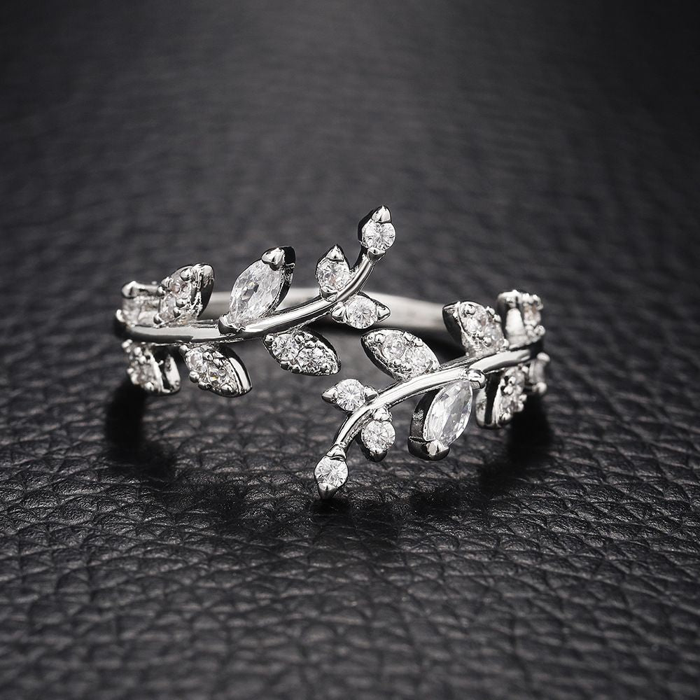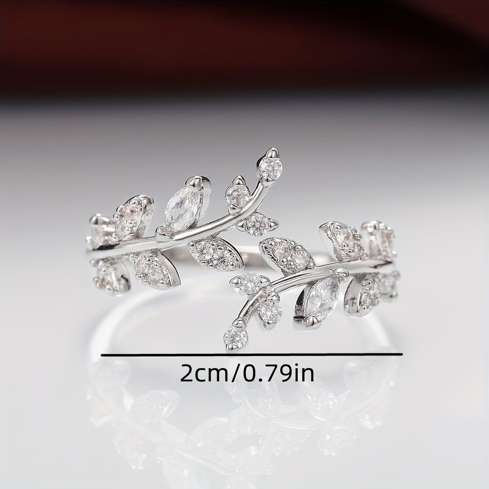 Elegant Finger Ring Leaf Shape With Zircon Adjustable Open Cuff Ring Delicate Decor For Women Girls Gift