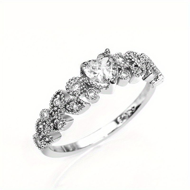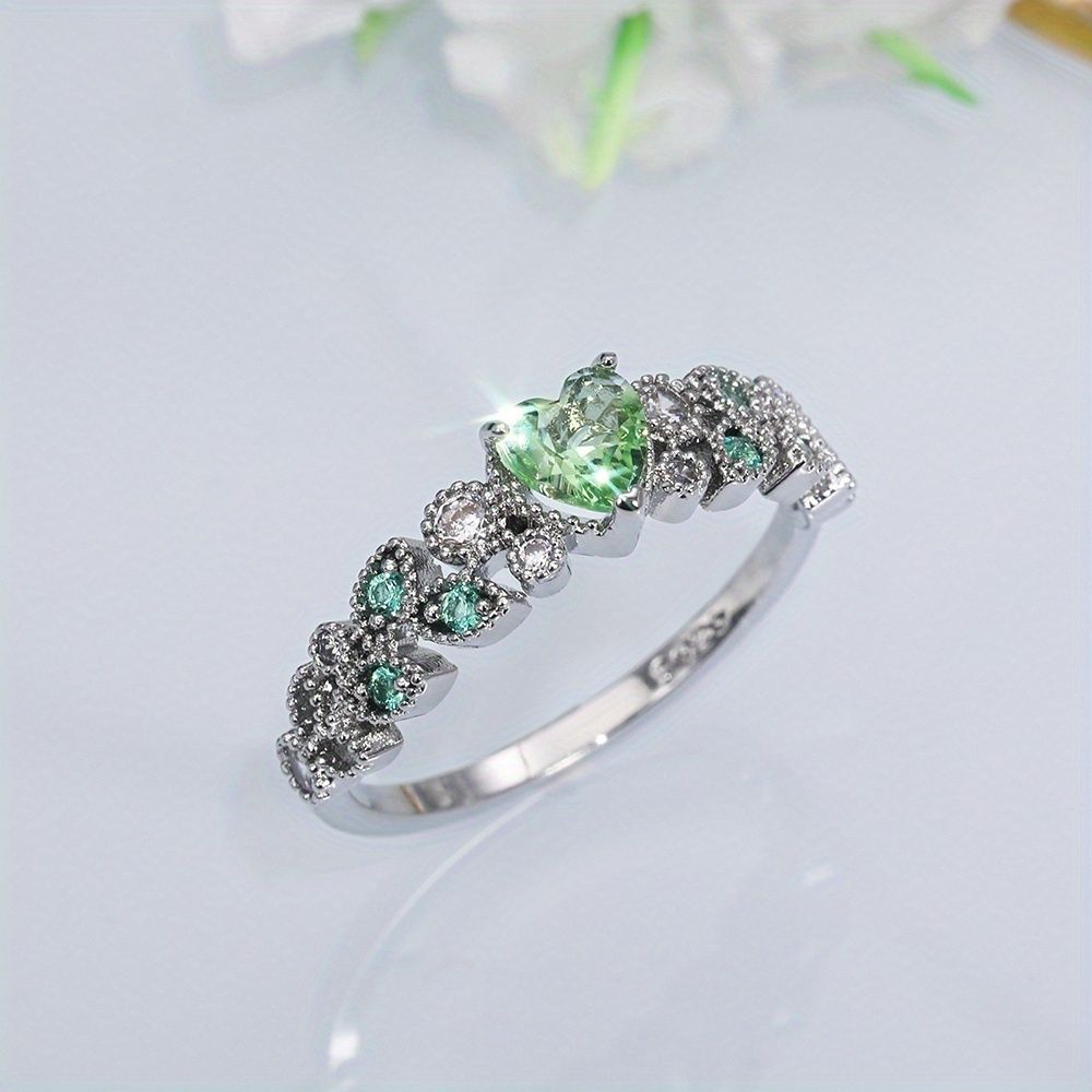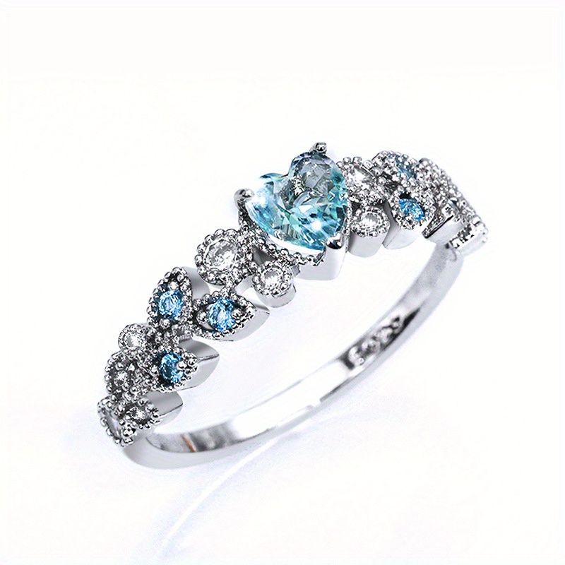 Exquisite Blue Zircon Ring Silver Plated Cute Heart Surrounded With Leaves Women's Promise Ring Fine Jewelry For Evening Party Cocktail Party