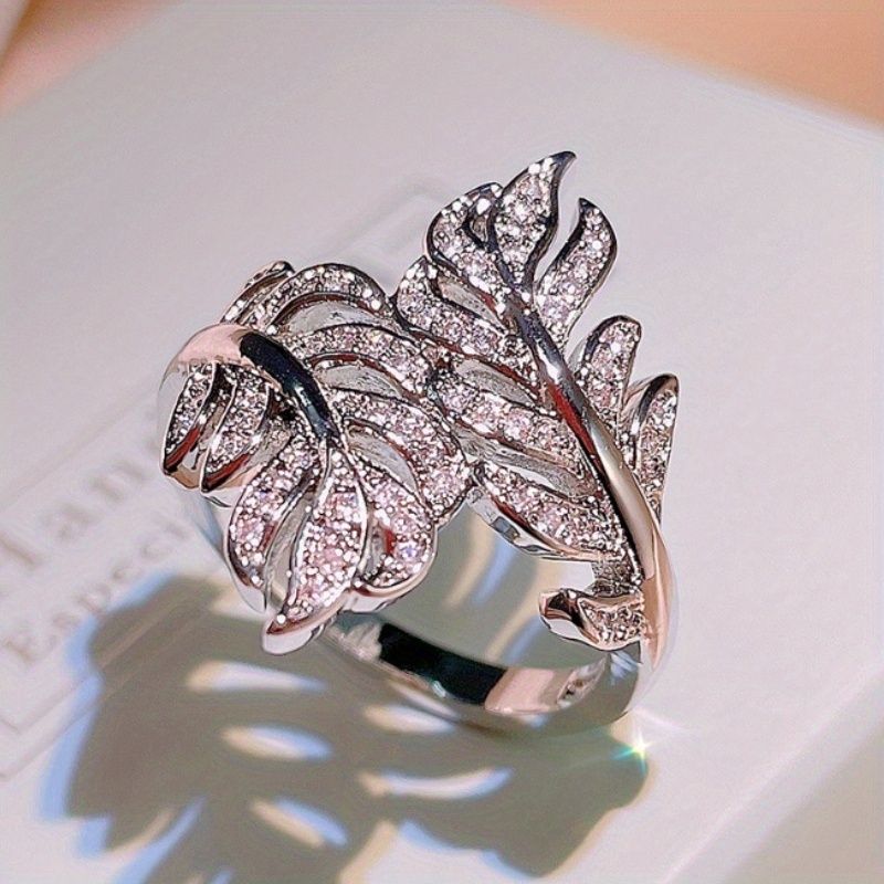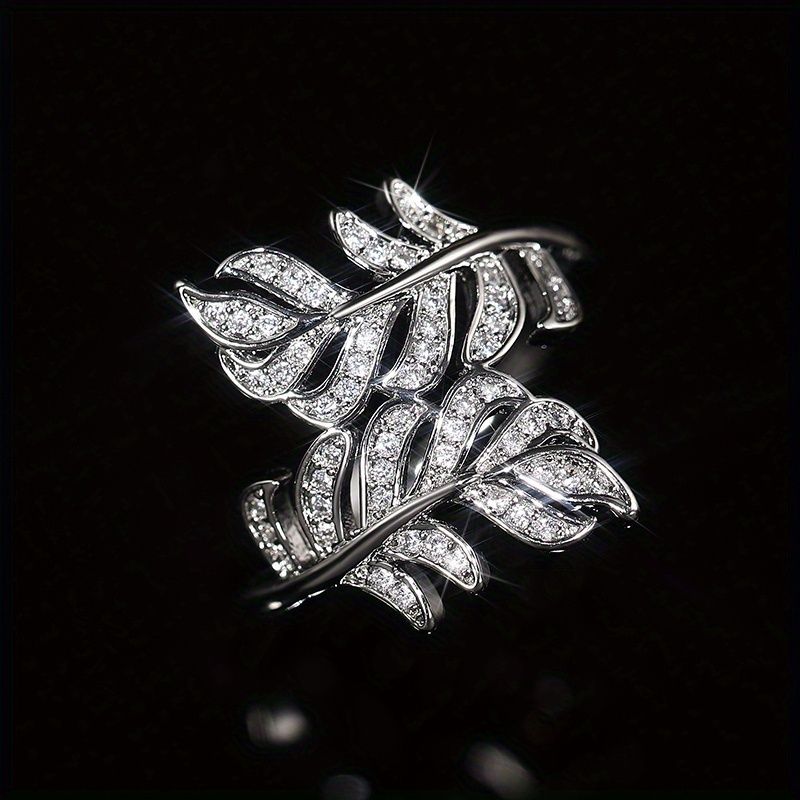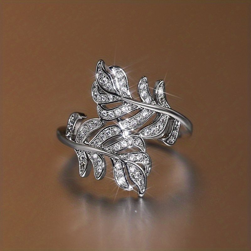 Fashion 925 Silver Plated Micro Pave Zircon Leaf Rings For Women Daily Casual Accessories