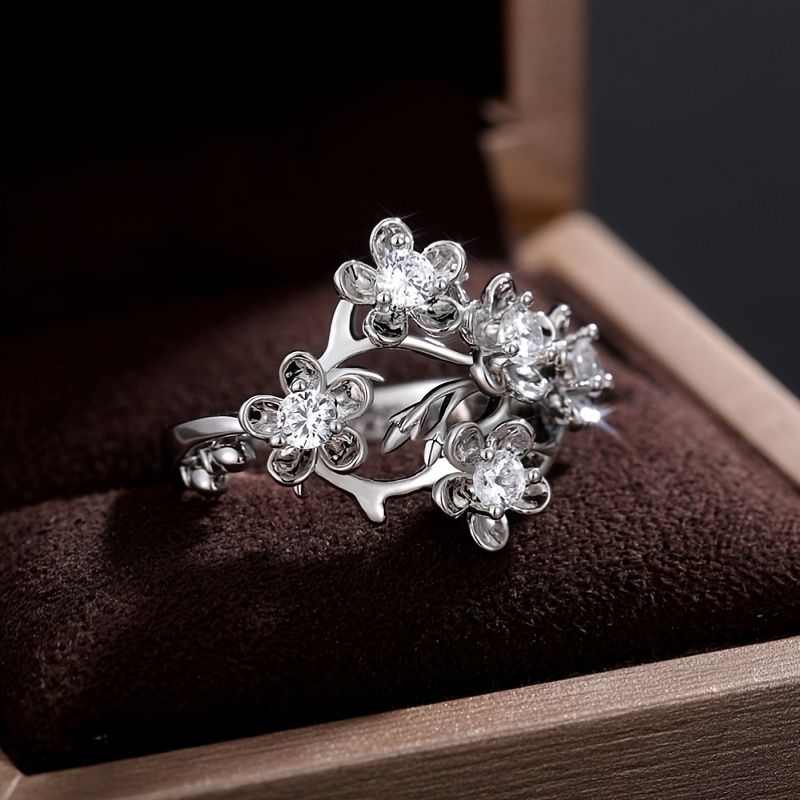 Fashion Elegant Ladies Silver Ring Engagement Wedding Romantic Flower Cubic Zirconia Rings For Women Finger Ring Jewelry