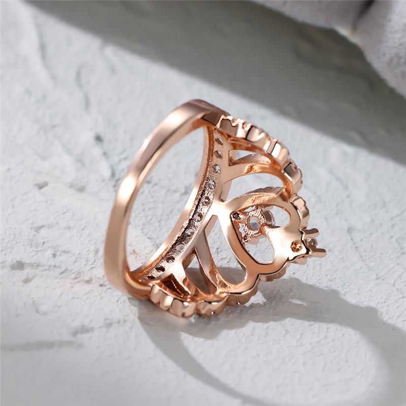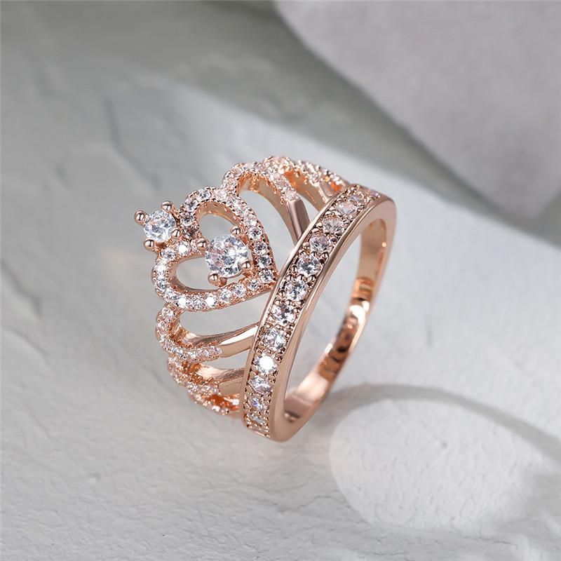 Love Heart Crown Shape Promise Ring 18K Gold Plated Copper Finger Ring For Wedding / Engagement / Valentine's Day Jewelry Gift