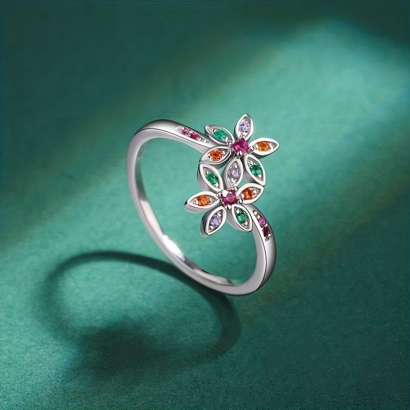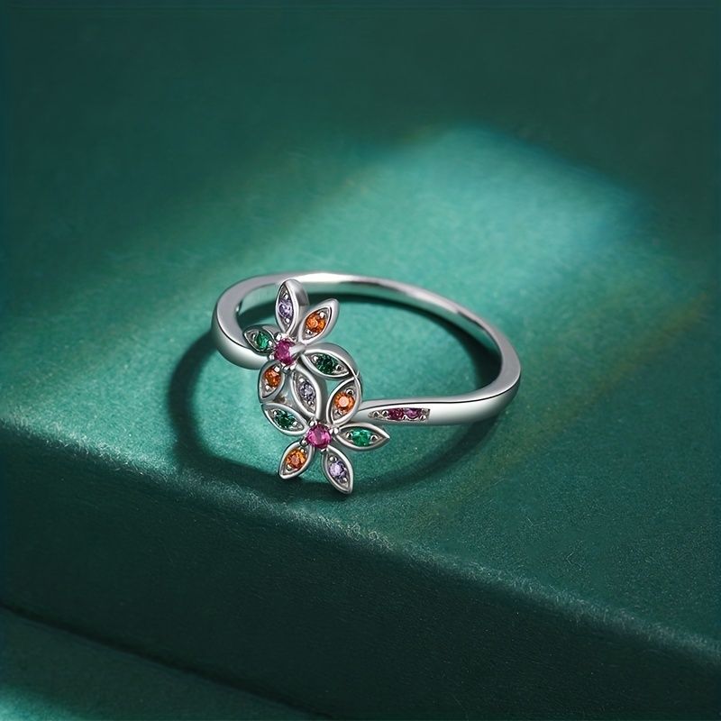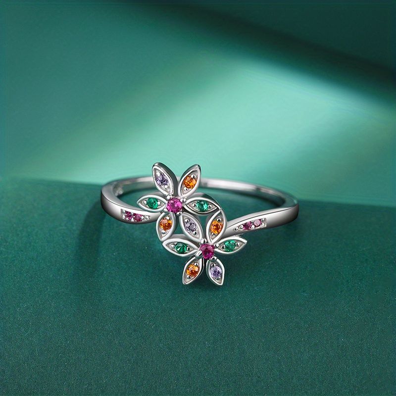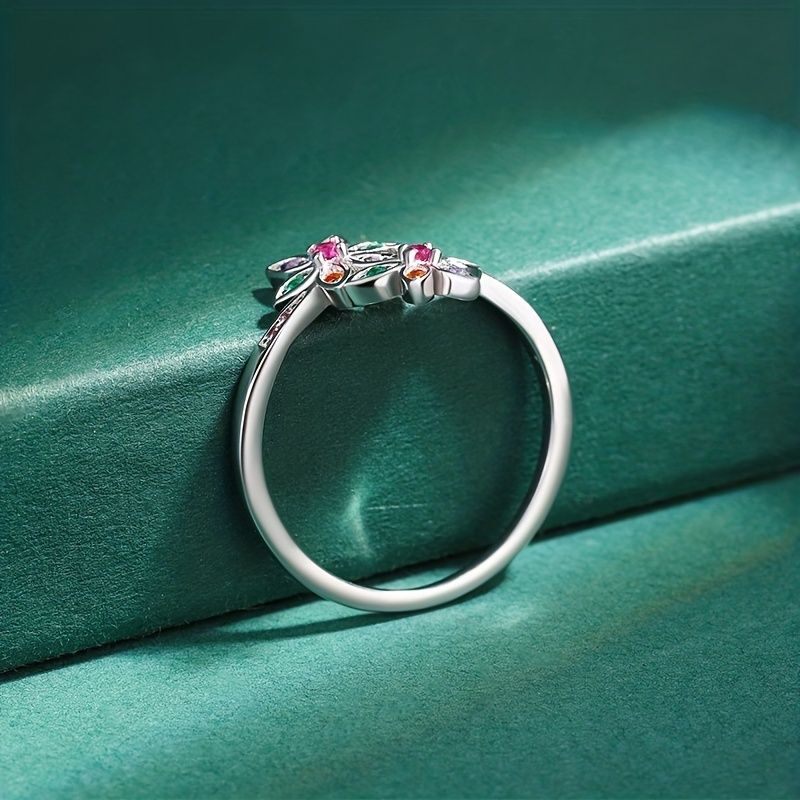 Mixed Color Zircon Ring S925 Sterling Silver Ring Jewelry Gift For Women Girl Birthday Valentine's Day Anniversary