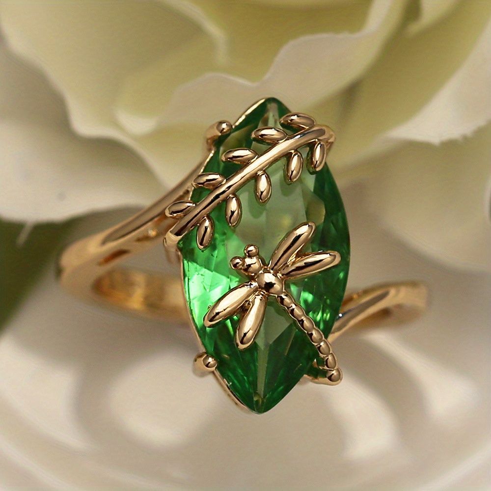 Oval Cut Green Zircon Ring Dragonfly Shaped Women's Ring Silver Plated Delicate Jewelry