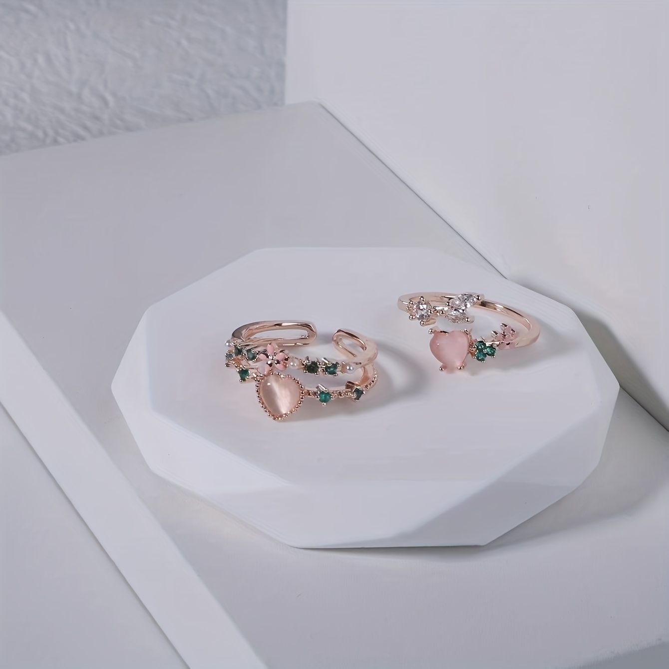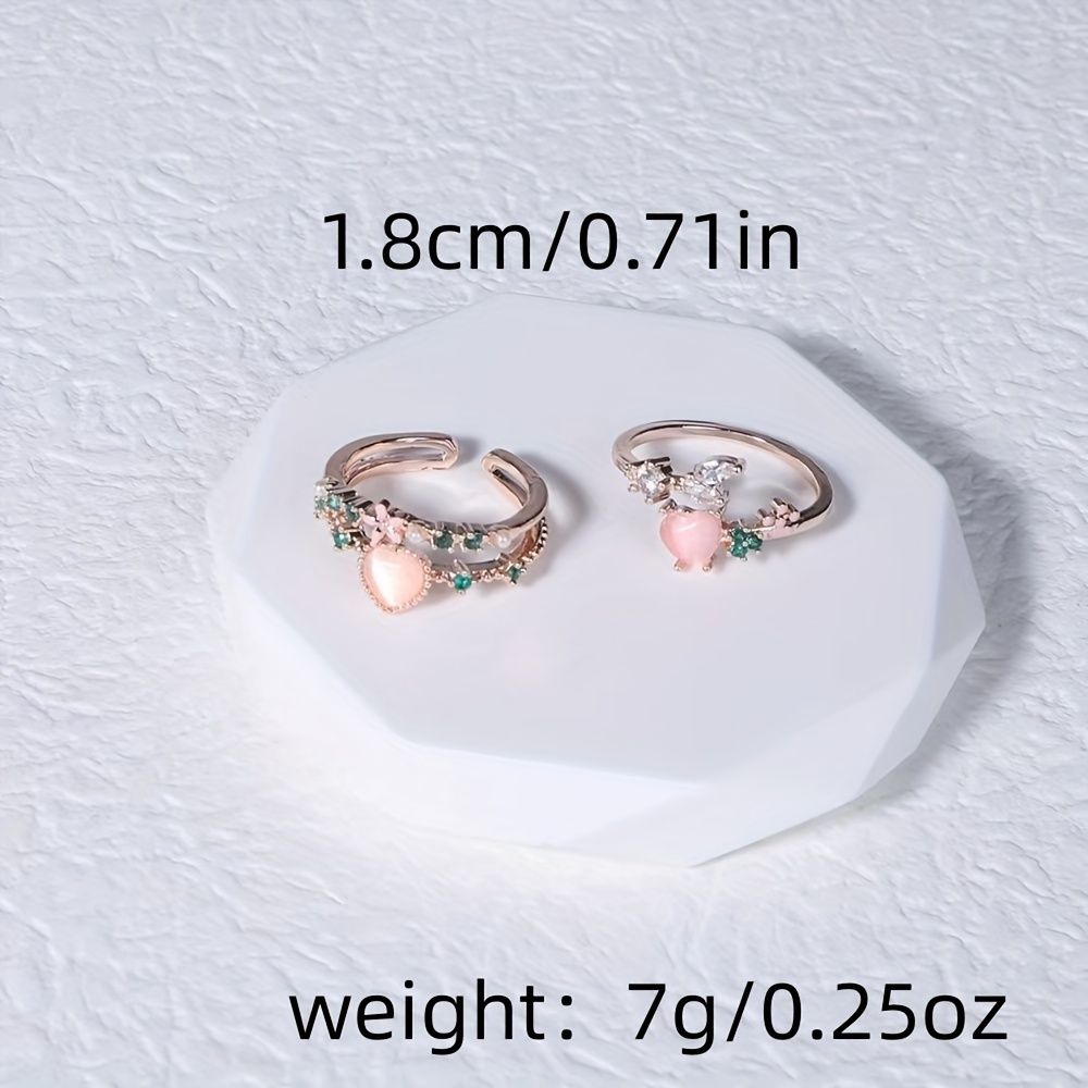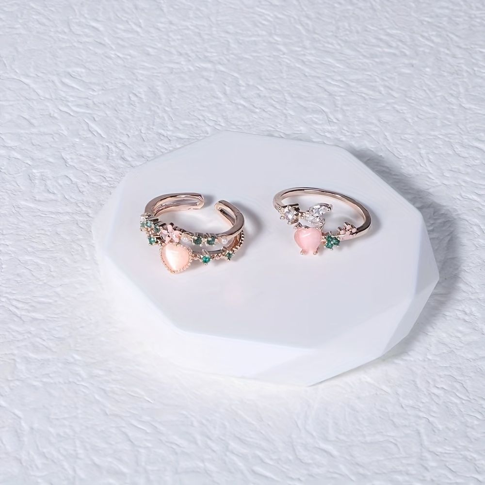 Romantic Heart Shape Zircon Open Adjustable Ring 2pcs/Set