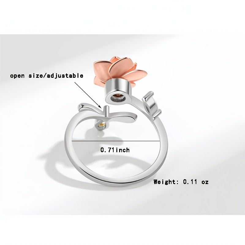 S925 Sterling Silver Adjustable Wrap Open Rings Rose Flower Bee Ring For Women Teen Women's Elegant Jewelry Women's Accessories