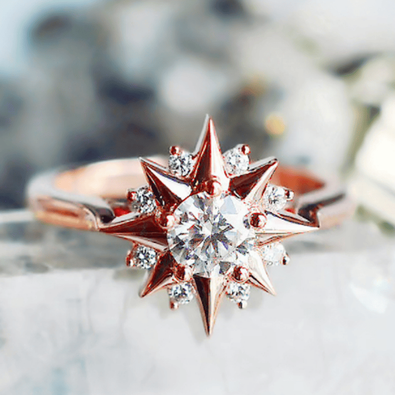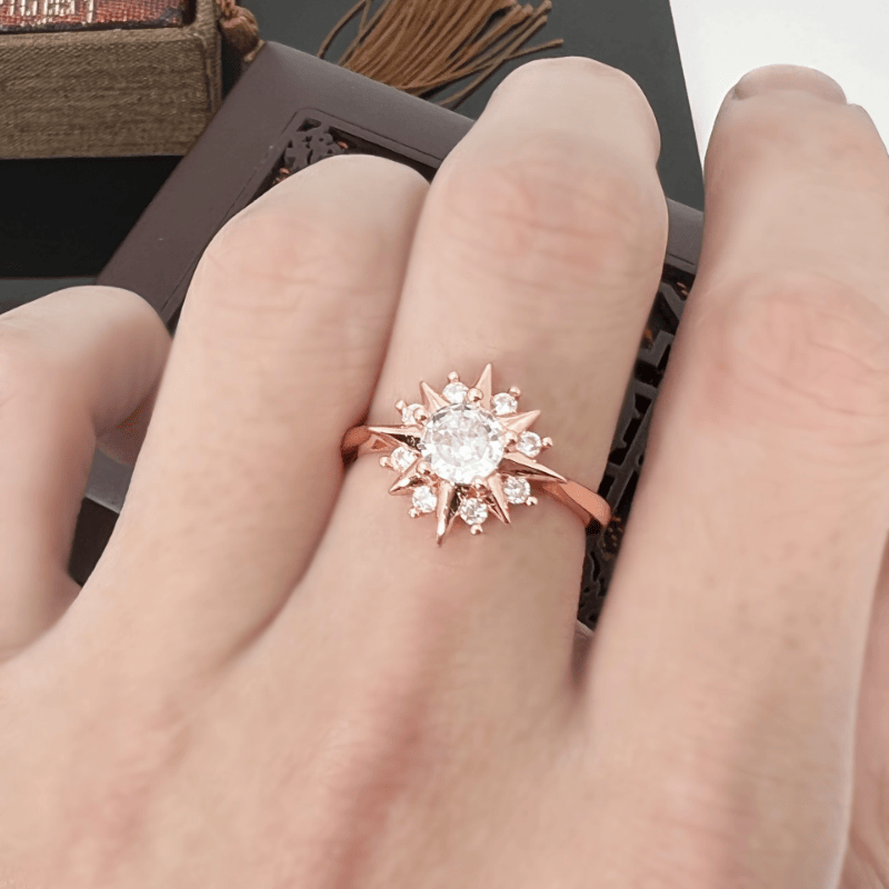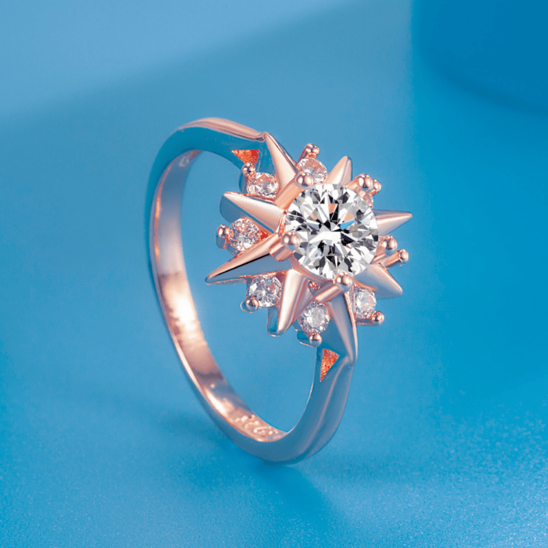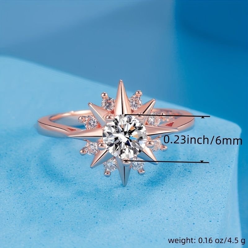 Star Shape Finger Ring Inlaid Shiny Zircon 18K Gold Plated Copper Finger Ring
