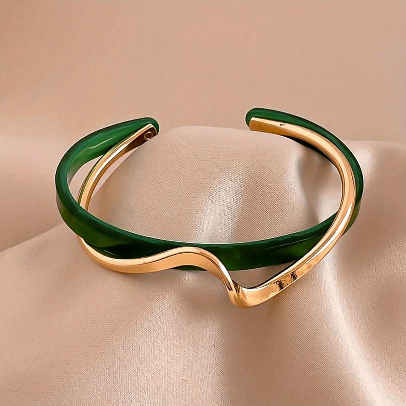 18K Gold Plated Wave Shape Cuff Bangle Inlaid Faux Pearl, Women's Minimalist Style Jewelry