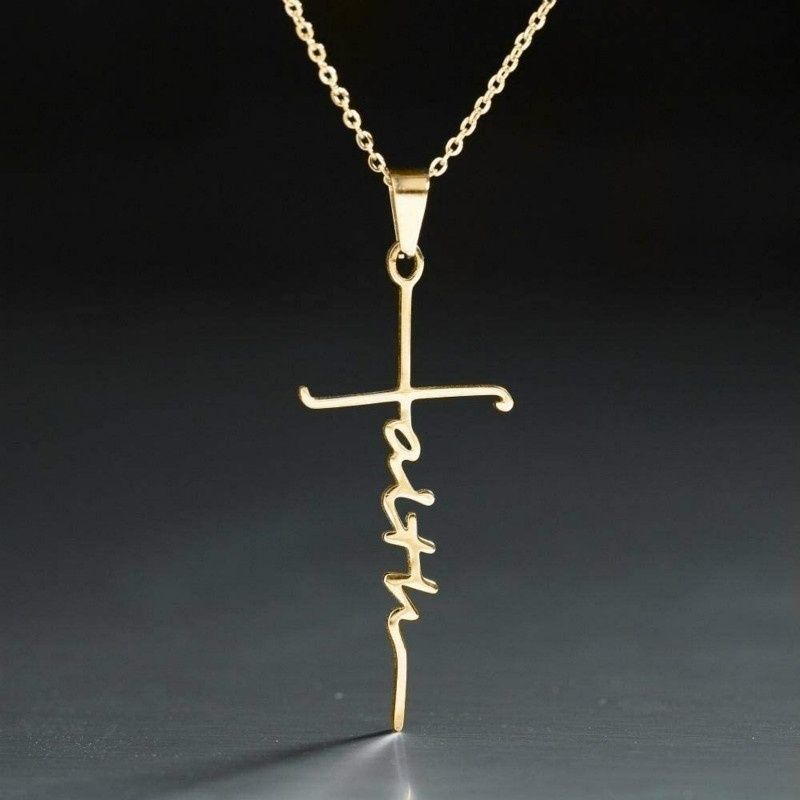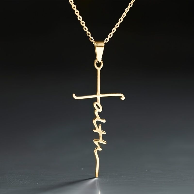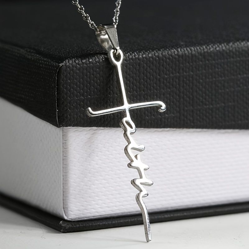 1pc New Stainless Steel Christian Cross Faith Word Church Prayer Religious Pendatn Necklace