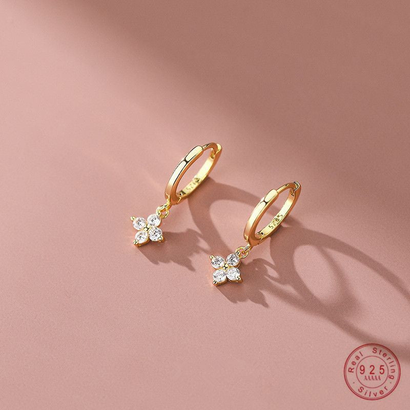 925 Sterling Silver Floral Sweet Earrings Temperament Simple Inlaid Zircon for Women Wedding Jewelry Accessories