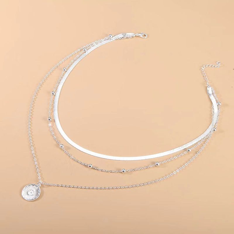 925 Sterling Silver Three-Layer Round Necklace Simple Snake Chain Charm Ball Chain Party Gift For Women's Exquisite Jewelry