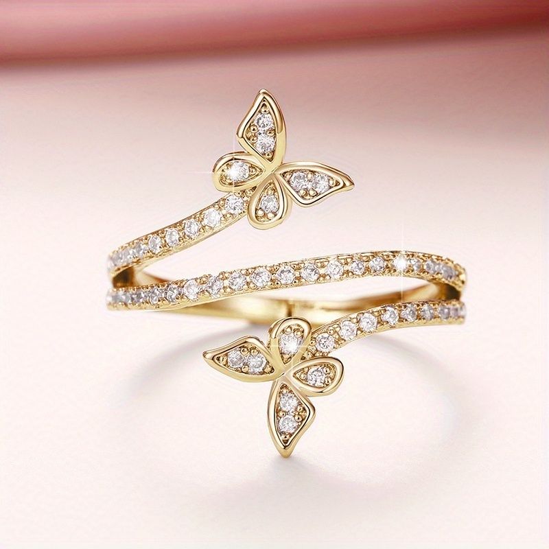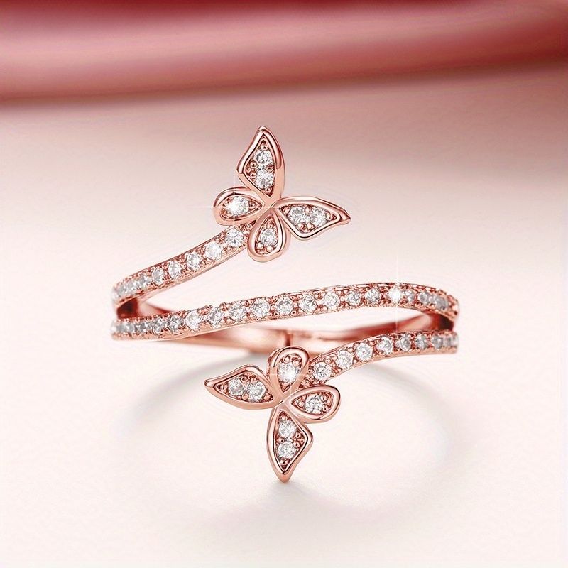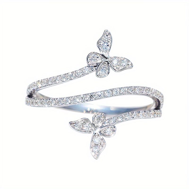 Elegant Wrap Ring Inlaid Zircon Silver Plated Butterfly Shape Engagement Wedding Jewelry Match Daily Outfits Party Accessory