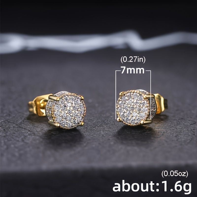Fancy Round Shaped Stud Earrings Paved Shiny CZ Stone Silver Color/Golden Everyday Fashion Versatile Ear Jewelry For Men & Women