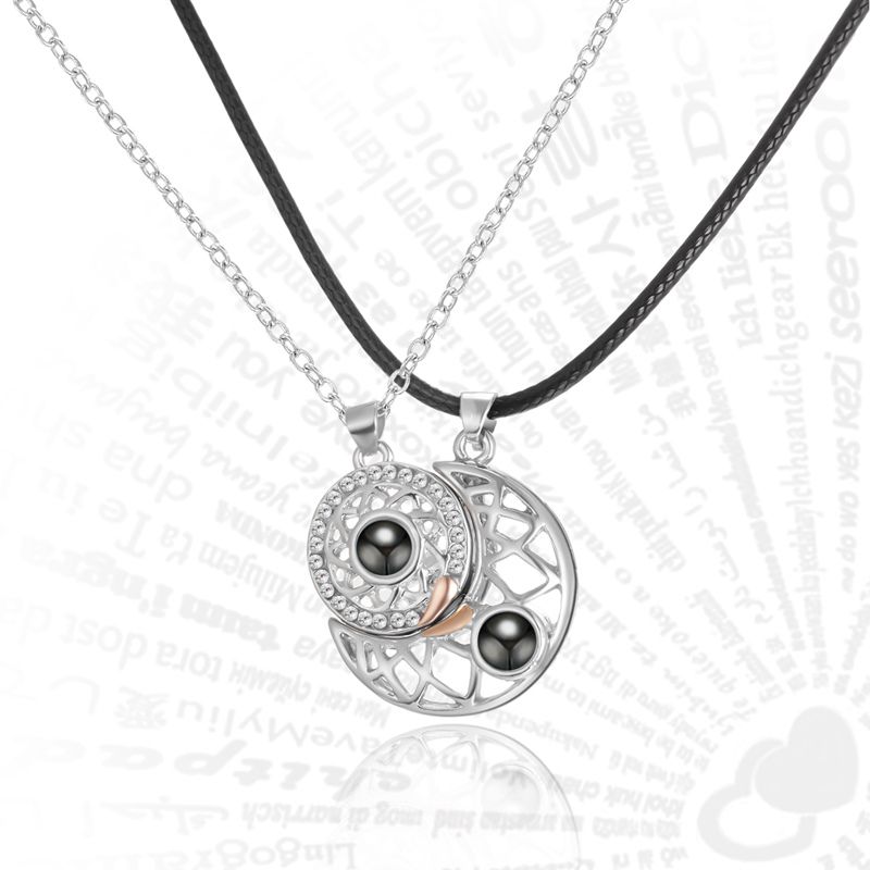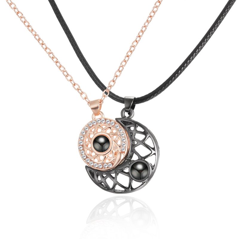 Fashion Sun Moon Heart Couple Necklace for Women Magnet Paired Pendant Chain Choker Valentine's Day Lover Wedding Jewelry Gifts